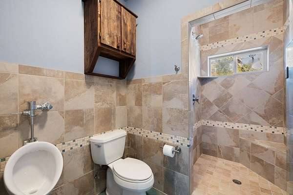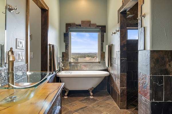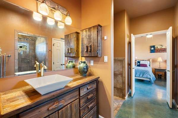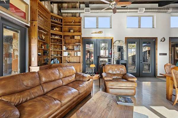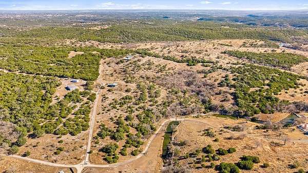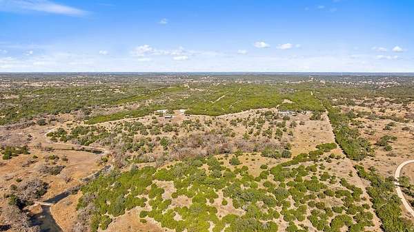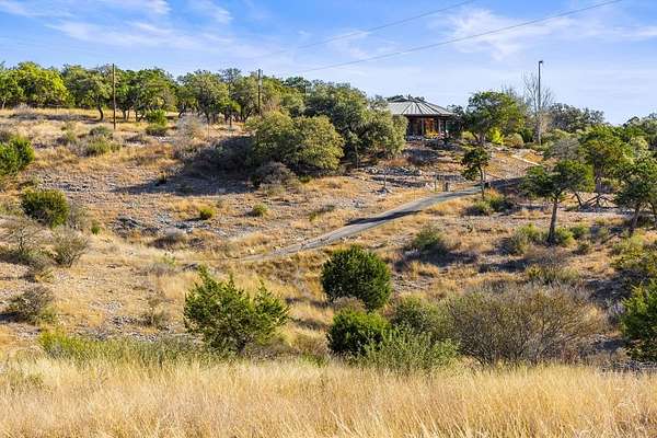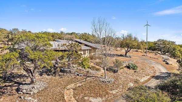 Perched at high elevation on 39 acres, this property offers exceptional privacy, long-range Hill Country views, live water, and potential off-grid capability-all just a short drive from Kerrville. This highly improved ranchette features a custom 2,277 sq ft hilltop home with guest quarters, thoughtfully designed for efficiency, comfort, and year-round living. The main home and guest house are connected by a large covered breezeway that opens into a beautifully landscaped, privately fenced courtyard-ideal for outdoor dining, entertaining, and stargazing. The land is anchored by approximately 400 feet of improved, dammed live-water Tomas Creek, owned on both sides. A constructed dam creates a deep fishing and swimming hole, along with a gentle slope to launch kayaks and small boats. A natural spring feeds the system in non-drought years. Water and energy infrastructure set this property apart. Also features rainwater collection totaling 29,000 gallons of storage, Solar panels and a wind turbine provide efficient power generation. A 1,080 sq ft barndominium provides space for a shop, equipment storage, recreation space, and includes three air-conditioned rooms with, and a bathroom.