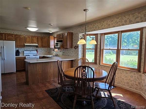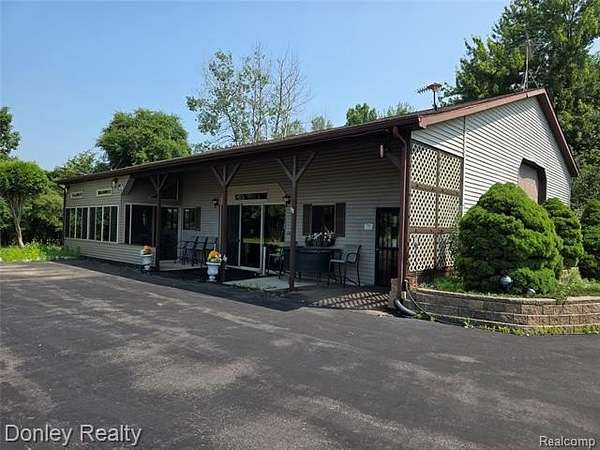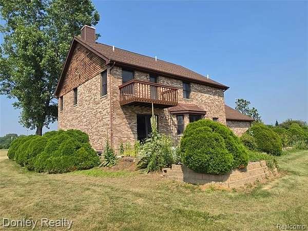Work and play blend perfectly at this distinctive 10-acre property. Complementing the solidly constructed brick home are a detached 2-door, a spacious 40'x60' pole barn appointed as an event space and lounge, and even a private glass house perfect for an art studio or playing cards into the late hours. The larger pole barn includes heat and air conditioning along with 2 bathrooms, a shower, a kitchen, and a bar. The detached garage is an ideal workshop with 2 high bay doors and able to store your bigger toys. Constructed in 1990 and cared for by a single owner, the residence offers three generously sized bedrooms and two and a half bathrooms. With 2800+ sq ft of living space and a full unfinished basement, there is plenty of room to relax and entertain. Stepping inside the wide French doors, an open staircase welcomes you, leading to the second floor. There you will find the primary bedroom featuring its own secluded balcony perfect for enjoying morning coffee or taking in a summer sunset. Rounding out the expansive primary suite is a sitting area, full bath with whirlpool tub, and a walk-in closet. The other full bath is located between the two upstairs bedrooms. The unfinished basement is a blank canvas with potential for another bathroom. Recent updates include the furnace in 2024 and the central air system in 2025. Additional highlights to this beautiful property include a 24,000-watt Generac generator that powers the home and the outbuildings, convenient access to I-69, only 1 mile from the Belle River Golf Course, and paved driveway and parking areas. This is truly a must-see property. Call for your private tour! Please do not walk the property without a scheduled appointment or a licensed agent.