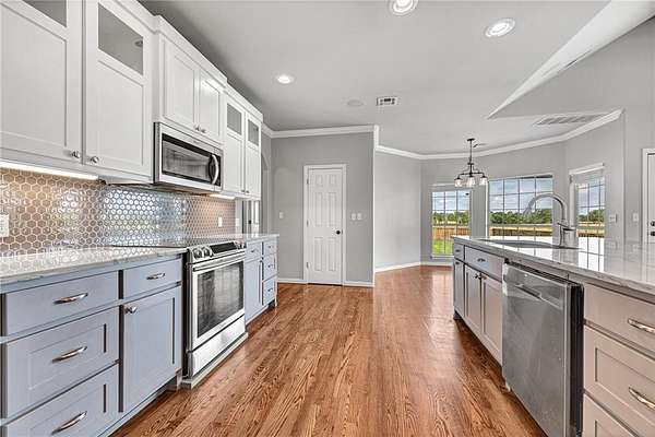 - Attic Storage, Blinds, Built-Ins, Ceiling Fans, Eat-in-Kitchen, Granite Counters, Pantry, Smoke Detector, Walk-In Closets