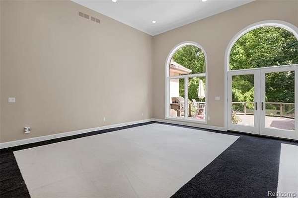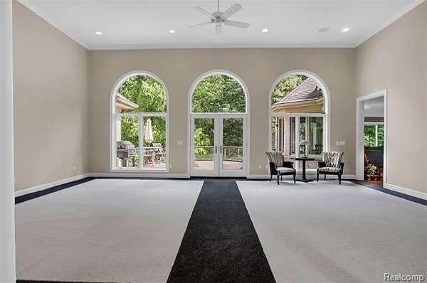 If an Open Floor Plan is what you're looking for, look NO further!! This European home has it all! Rolling, wooded nearly 3-acre lot offers a serene view with ultimate privacy. The custom window package is incredible! This all-brick ranch features a full walk-out basement, a Master Suite with his/her vanities, a Jacuzzi tub, 3 Bedrooms, and 5 Baths/Lavatories. The office/den can be used as a 4th bedroom. Enjoy the convenience of a 1st-floor laundry with storage cabinets! The open concept truly screams, ENTERTAIN! You'll love the spacious gourmet kitchen, featuring granite countertops and a large island with a dishwasher and a wine refrigerator. The Great/Family room features high ceilings and a super-efficient sealed gas fireplace. Step outside onto the extensive second-story cedar deck and find a built-in TEC Grill, perfect for outdoor gatherings. The property is landscaped with a circular drive, ornamental trees, including a 30-year-old Japanese maple, and creates a tranquil and peaceful environment. Despite its serene setting, this home is just minutes from downtown excitement, offering some of the best shopping and dining. You will truly have the best of both worlds. The office space can easily be converted into a 4th bedroom by installing an entry door in front of the powder room and closet. This beautiful home has it all.