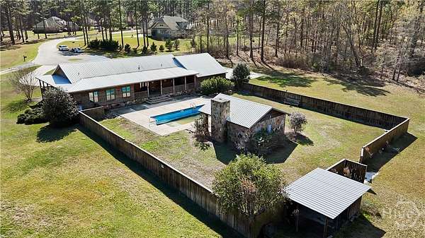 This isn't a backyard. It's nearly 6 acres of your freedom... land. Acreage at the end of a quiet cul-de-sac gives you the kind of privacy and breathing room that neighborhoods simply can't offer. Space to live outdoors, not just dream about it. Mornings can start with still water and a fishing line disappearing into the pond. The kind of place where kids of all ages yell, "I got one!" No screen time needed here. This is what turns normal days into core memories. In this land-and-lifestyle category, this property stands apart from the smaller .30-acre homes nearby. Those offer a nice home. This one offers open space and country living. A true log cabin ranch sits naturally on the land, with a pool ready for long summer afternoons and a pool house complete with a full bath and kitchen area. Pool time stretches into the evening. Then it's back to the dock for one more cast, bow practice in the open yard, or simply quiet, you can actually hear. Oh, the pond is stocked with bass. Charlie proved that. See the picture. Some homes give you a backyard. This one gives you a place where every day turns into fishing stories, pool days, and quiet nights under an open sky. Your story has already begun.