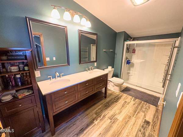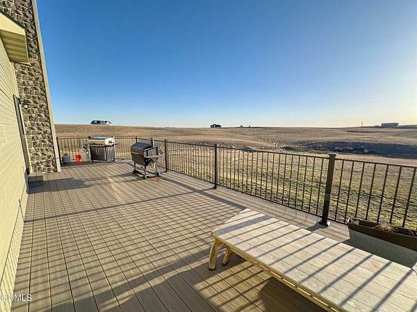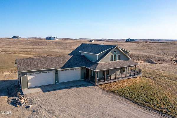 Nestled within the picturesque Wilder Ridge Subdivision just beyond Williston's outskirts along East 1804, this exceptional residence boasts rural charm mere minutes from town. Situated on 2.6 acres of pristine landscape, this sprawling home is a testament to natural beauty. The airy open-concept family room, bathed in sunlight from its floor-to-ceiling windows, sets the tone for relaxed living. Ascend to the upper level, where the entire floor is dedicated to the luxurious primary suite, complete with a spacious walk-in closet and a serene ensuite bathroom. Adjacent, an office space overlooks the family living area below. Downstairs, two main-floor bedrooms offer their own retreats, each featuring walk-out sliding doors opening onto the expansive wrap-around deck--an idyllic spot for enjoying morning coffee or evening sunsets. The generously sized garage accommodates up to four vehicles or your outdoor gear. Below, a newly finished basement bedroom and bathroom with an unfinished downstairs living room, complete with bonus room space - all accessing the backyard through two walk-out sliding doors. Don't miss your chance to experience the epitome of rural elegance--schedule your private showing today!