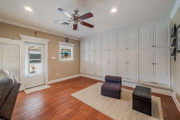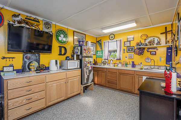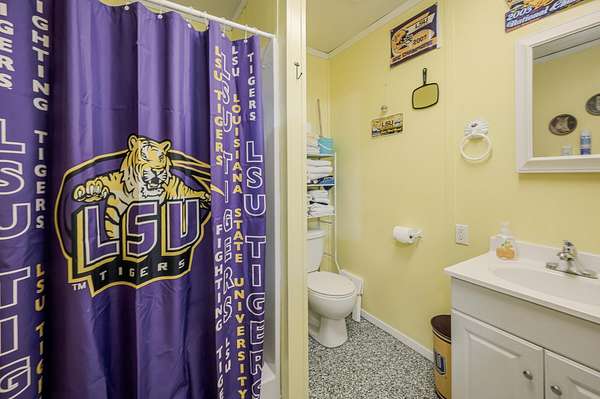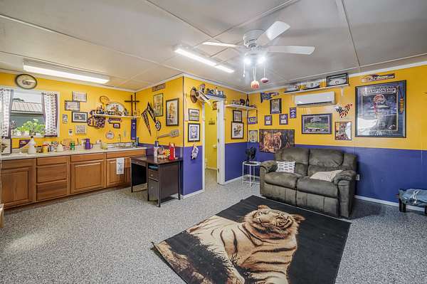 Discover refined living on 2.044 acres of secluded splendor just outside Thibodaux. This exquisite estate is nestled in a coveted locale where expansive views and generous separation create an ambiance of peaceful elegance. Step inside the charming three-bedroom, two-bath residence where a large living room welcomes you into a space filled with natural light and thoughtful details. The modern kitchen is a culinary masterpiece featuring exquisite quartz countertops, custom cabinetry, and ample storage, enhanced further by thoughtfully integrated built-in cabinets throughout the home. These elegant storage solutions seamlessly blend functionality with design, ensuring that every room is both beautifully appointed and impeccably organized. The primary suite exudes luxury with its double vanity and an expansive walk-in shower that transforms everyday routines into indulgent experiences. Rest easy knowing this home is equipped with a whole-home Cummins generator, ensuring uninterrupted power during hurricanes or outages. The property's true crown jewel is the impressive 2,400-square-foot workshop. This versatile space is designed to accommodate all your prized recreational vehicles-RVs, boats, ATVs, and more-while also offering a spacious storage loft and an efficiency apartment complete with a kitchenette and full bath. Whether hosting an elegant South Louisiana seafood boil or simply enjoying additional living space, this workshop adapts gracefully to your lifestyle. Outside, an inviting inground pool awaits, securely enclosed by a tasteful fence for both beauty and peace of mind. Multiple storage sheds further enhance the estate's functionality, including one artfully converted into an air-conditioned craft room. Embodying both luxury and practicality, this exceptional property seamlessly blends elegant design with boundless potential. Arrange your private tour today and experience the charm, sophistication, and clever storage solutions of this remarkable home.