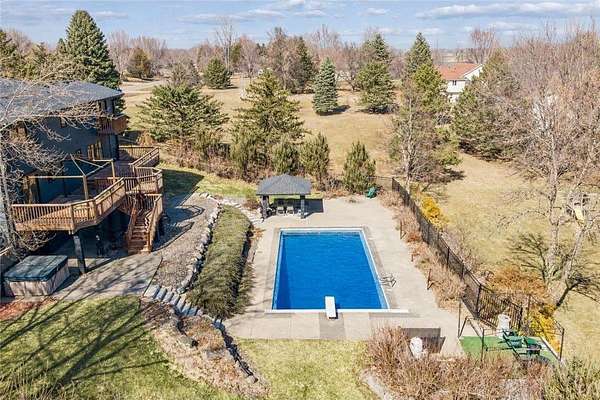 Enjoy lake living at its best with this two-story walkout home set on over 2 acres along Lake Wilhelm. The private backyard is built for fun and relaxation, featuring a 20x40 in-ground pool with a cabana, firepit, hot tub, and expansive patio space—perfect for entertaining or quiet nights at home. A large cedar deck overlooks the lake and offers plenty of room for grilling and lounging. Inside, the home offers 5 bedrooms and 4 bathrooms, including 4 bedrooms and a convenient laundry room on the upper level. The updated kitchen (2022), refreshed bathrooms, new flooring, and finished lower level with a bar, exercise room, and theater space provide comfort and style throughout. Walkout basement includes direct access to the pool area. Recent updates include a new roof (2021), exterior updates (2023), new windows (2014), and numerous interior upgrades. The property features approximately 650 feet of shoreline, including a unique peninsula, offering unmatched privacy, incredible wildlife views, and endless recreation opportunities. Located on a quiet cul-de-sac with no public lake access, enjoy peaceful surroundings, and great fishing—all just minutes from parks, trails, and local favorites.
