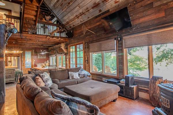 Welcome to your private Red River retreat. Located on 7.05 acres in Colbert, Oklahoma, this unique property offers the perfect blend of rustic charm, outdoor recreation, and peaceful seclusion, all within easy reach of the Metroplex. Overlooking the scenic Red River, the three-story cabin features stunning views and warm, inviting character throughout. With 3 bedrooms and 2 bathrooms, including a spacious bunk room, the home comfortably sleeps 8 or more guests, perfect for hosting family and friends. Step inside to discover a cozy, rustic interior highlighted by a wood-burning stove, rich wood finishes, and plenty of natural light. The large back porch is the ideal spot to enjoy your morning coffee as the sun rises over the river or to unwind in the evening while watching the sunset. Outdoors, the property truly shines. A private sandy beach along the Red River invites you to swim, relax, or cast a line, while the on-site boat ramp makes it easy to launch your fishing boat for a day on the water. Wildlife enthusiasts will appreciate the abundance of deer and other native animals that frequent the property, creating a true nature lover's paradise. Just 7 miles from Lake Texoma, 13 miles from Choctaw Casino & Resort, 49 miles from McKinney, and 82 miles from Dallas, this property offers convenient access to both recreation and entertainment. Adding to its charm is a converted grain silo, a one-of-a-kind outdoor hangout spot that's perfect for gathering on the patio and soaking in the quiet sounds of the river. Whether you're looking for a weekend getaway, an income-producing Airbnb cabin, a fishing camp, or a peaceful full-time escape, this Red River property delivers a rare opportunity to own a slice of Oklahoma paradise with unbeatable views and endless relaxation.