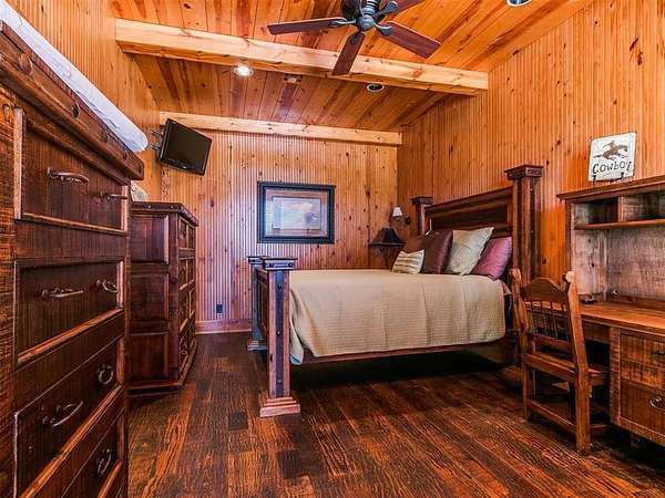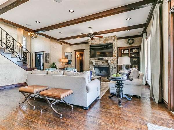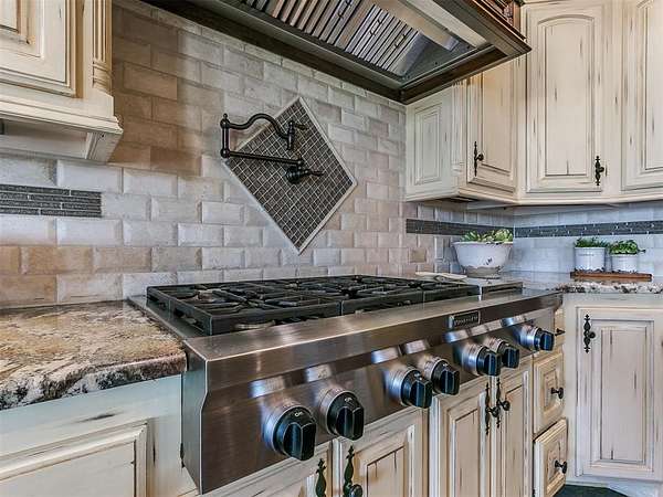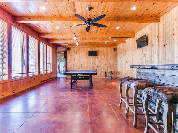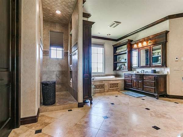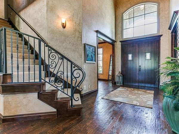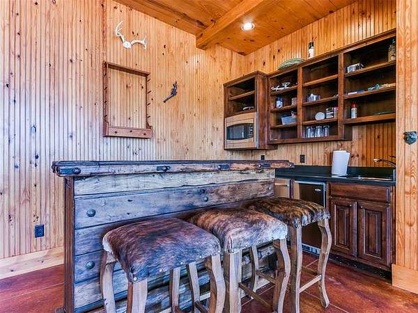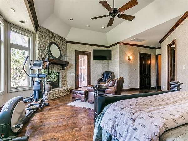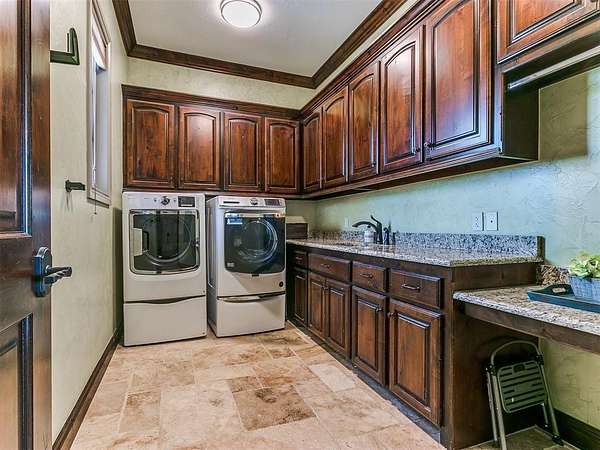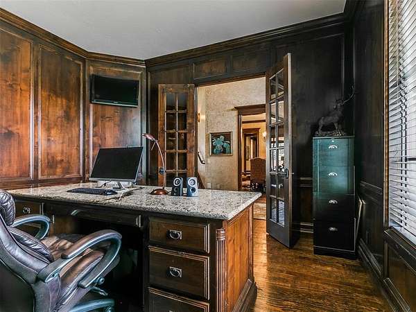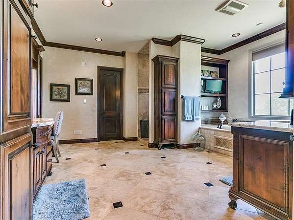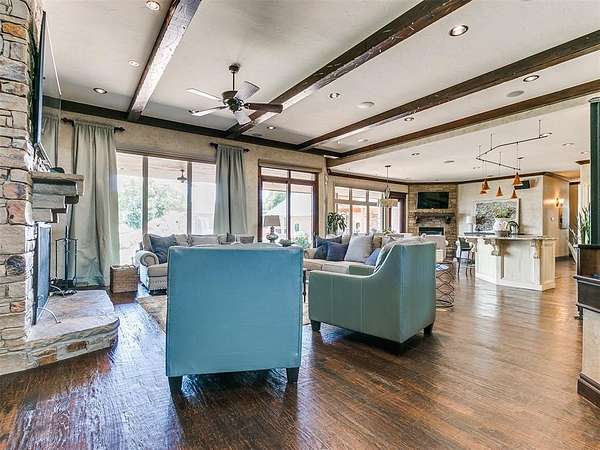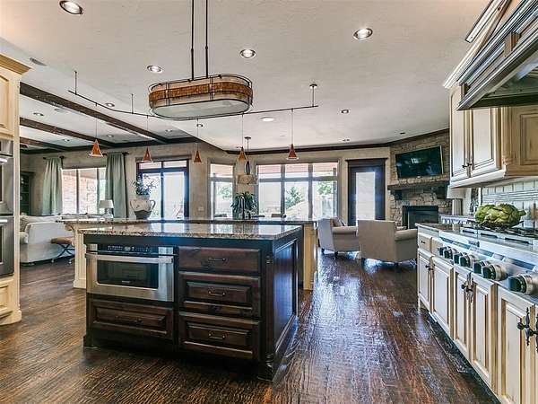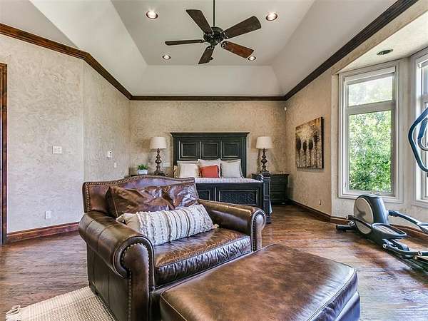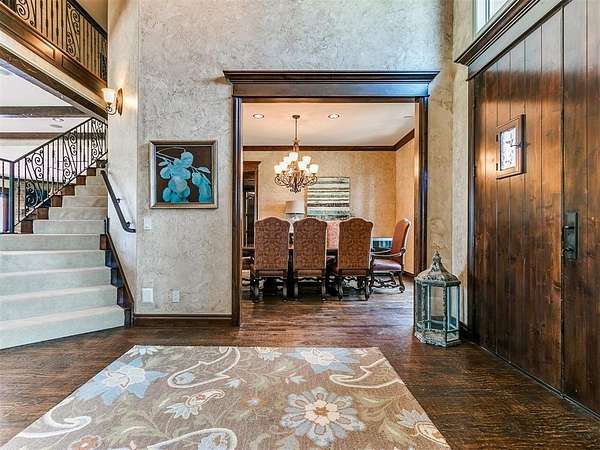 Lavish, private Choctaw estate! Gated entry, situated on 7.55 acres(mol). Short commute to downtown OKC & surrounding areas. Impressive grand entry! This amazing estate also includes guest quarters/pool house fully contained with 2 bedrooms, living room, kitchenette area, utility room and bathroom. The main house features 4 spacious bedrooms, 4 bathrooms, 3 living areas plus a study & oversized 6 car garage. The spacious main living room features raised beamed ceilings, general living room seating space plus additional conversational seating space, 2 fireplaces, hand-scraped hardwood flooring & more. The open floorplan includes a cook's dream kitchen featuring loads of cabinetry, beautiful granite counter tops, 2 islands, 6 burner stove top with a griddle, pot filler, double ovens, sub-zero refrigerator, huge pantry, breakfast bar, butlers prep area w/ice machine, etc. The master suite will easily accommodate king-sized furniture and features a fireplace, beautiful private bath area with loads of cabinetry and storage space, double vanities, whirlpool tub, walk-in shower, huge 3-tiered walk-in closet and more. Other features include a very nice private study with built-in book cases and desk space, a large formal dining room, a large inside utility room with great storage & counter space plus a sink. There is also an additional bedroom with a private bathroom. Other features include a true hidden basement area plus a saferoom. Upstairs features a wonderful large theatre room, plus a bonus room with a built-in refreshment area & balcony access. There are also 2 additional bedrooms plus 2 bathrooms. The exterior is a paradise of it's own. Features include two spacious back covered patio areas, an outdoor kitchen, a fireplace and an amazing inground pool with a rock waterfall, slide, gratto & special lighting. Another bonus is the oversized 6 car garage delivering over 1,800 square feet of attached garage space.