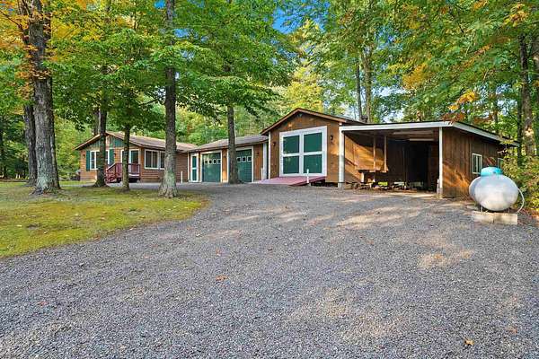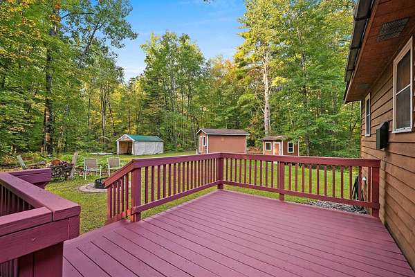 Don't miss the chance to own this charming cottage in Northern Wisconsin, where comfort meets nature. This updated one-story cabin features an open concept design, ideal for relaxation and entertainment. Set on 1.58 wooded acres and directly across from a beautiful National Forest, it's perfect for nature lovers. Cottage features a laundry area within the bathroom for convenience and includes a 10x16 open deck, great for morning coffee or evening gatherings. A two-car detached garage with wood-burning stove ensures warmth during colder months, and a 16x32 utility shed provides extra storage for outdoor gear. Outdoor enthusiasts will love the direct access to UTV/ATV and snowmobile trails right from the property. Don't miss your chance to own this enchanting retreat in Northern Wisconsin.