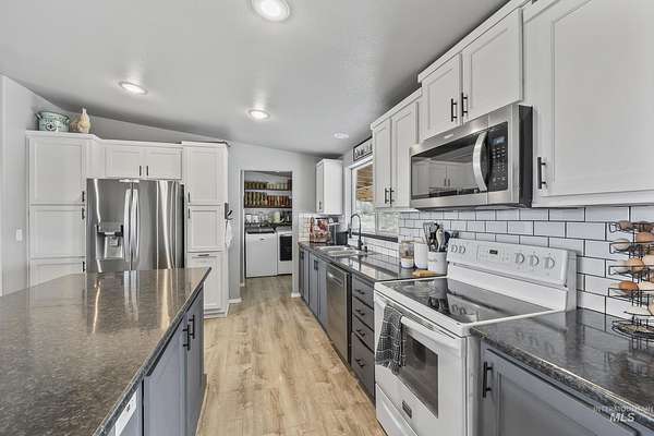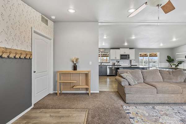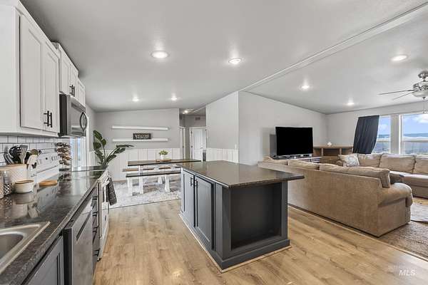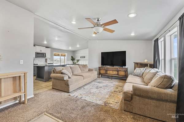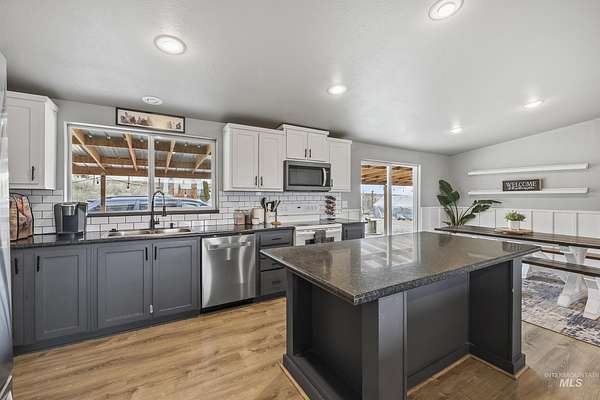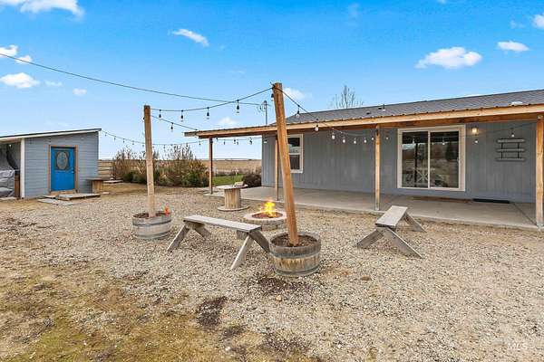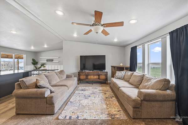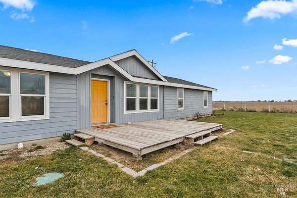 Tucked away just outside Middleton, this inviting 4-bedroom, 2-bath home sits on a generous 1.5-acre lot and offers the freedom of country living with modern comfort. Built in 2016, the well-maintained manufactured home spans 1,620 sq. ft. and includes thoughtful custom touches throughout. The open great room centers around a stylish kitchen with a breakfast-bar island, opening effortlessly to the living area where vaulted ceilings and large windows fill the space with natural light. The primary suite provides a peaceful escape with a walk-in closet and a soaking tub perfect for unwinding. Outside, enjoy a wide-open yard ideal for entertaining, gardening, or simply relaxing on the expansive covered patio. Fruit lovers will appreciate established raspberry, blackberry, strawberry, and peach plants. A spacious 36' x 36' shop/garage with 220-volt power offers excellent space for vehicles, projects, or storage. There's room for chickens and even a horse or cow, and with no CC&Rs or HOA, you'll enjoy true flexibility. A rare opportunity to have space, privacy, and convenience all in one.