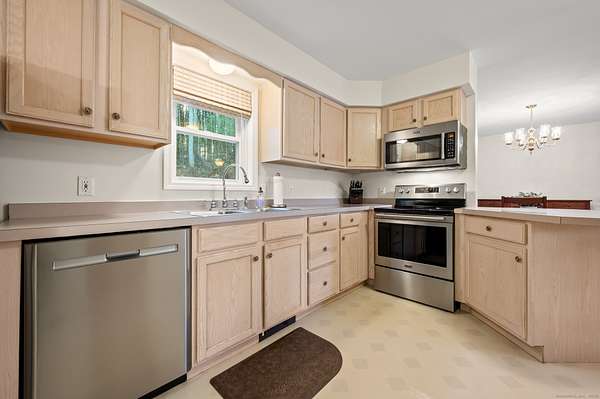 HIGHEST & BEST OFFERS DUE BY 5PM THURS. DEC.11. Meticulously cared for 7 Room home on 2.95 private acres in N.Coventry! This well maintained home's many features includ a first floor master bedroom suite, open floor plan connecting the kitchen, living room and dining room and an oversized 3 car garage! On the main level you'll also find Bedroom 2 which has an attached full bath. The Breezeway has been converted to a den with sliders leading to the patio and access to the back yard. The kitchen has an abundance of upper and lower cabinet space, including a beverage center and breakfast bar. Everything you need is on the main level, including the washer and dryer. Another spacious bedroom with adjoining multipurpose room is on upper level along with a spacious, floored walk in attic! The interior was recently painted including walls, ceilings and doors. Harvey windows and French Door in dining room, water treatment system, washer & dryer, LVP flooring, kitchen appliances and, garage door openers with remote monitoring and operation are some of the recent upgrades. Smart home devices such as the programmable thermostats, Nest smoke and CO alarms and ring cameras help you to feel safe and comfortable. The drywell for the water treatment system, underground gutters, generator hook and a removable kennel with ceiling are added bonuses! 1295 North River Rd. is conveniently located about 5 miles from UCONN Storrs and ECSU, 25 minutes to Hartford and 35 mins to Bradley Airport.