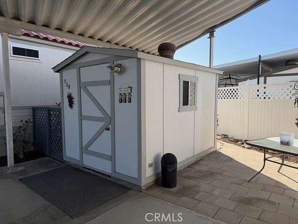 This property features a cement driveway, covered awning, and an included storage shed, providing added functionality and shade. Whether you're looking for a seasonal getaway or a full-time residence, this lot offers flexibility and value in a welcoming senior community.