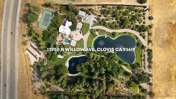 Traveling north on Friant you will turn on Willow Ave and another small turn on Willow Bluff. Property is on your left with 2 gates and Pond.