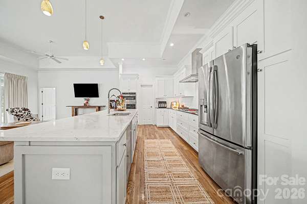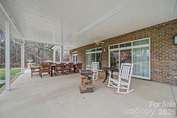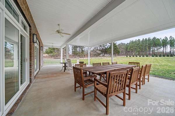 Welcome to peaceful country living on over 4 beautiful acres! This stunning home offers the perfect blend of charm, functionality, and space-inside and out. Relax on the inviting rocking chair front porch or entertain with ease on the massive covered back patio, complete with ceiling fans and plenty of room for gatherings. The huge fenced backyard provides privacy, and space for your pets to roam, while the charming gazebo and fire pit overlook a stocked pond with fountain, creating your own private retreat. Inside, you'll love the open floorplan filled with natural light, real hardwood floors, elegant wainscoting, and tray ceilings that add architectural interest throughout. The spacious dining room features a walkout to the covered patio, making indoor-outdoor living seamless. The kitchen is a showstopper with a huge island and breakfast bar, gas cooktop, wall oven and microwave, stainless appliances, stainless vent hood, and a dedicated coffee bar-perfect for hosting or everyday living. The primary suite offers tray ceilings, private access to the covered patio, a tiled walk-in shower with seat, and a large walk-in closet with built-in shelving. Bedroom two includes its own attached bath with walk-in shower, while bedroom three features new LVP flooring. Additional highlights include a dedicated office/study with pocket doors, a spacious drop zone at the garage entry, and a large laundry room with cabinets and counter space for folding. If you're looking for space, privacy, and thoughtful upgrades in a country setting, this one checks all the boxes.