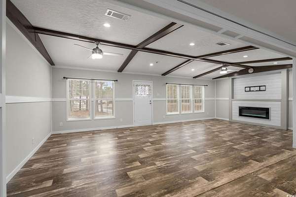 Built in 2024, this home is situated on a generous 1.73-acre lot, offering space, comfort, and modern features throughout. This 3-bedroom, 2-bath home features a spacious primary suite with a walk-in closet and a well-appointed primary bathroom complete with a garden tub and separate walk-in shower. The open kitchen includes a functional work island, perfect for everyday living and entertaining, and flows into the living room highlighted by a cozy electric fireplace. Enjoy outdoor living with 8' x 12' decks on both the front and rear of the home. Additional features include a 6' white vinyl privacy fence and a large 3,575 square foot circular concrete driveway, offering ample parking for multiple vehicles, a boat, RV, and more. This property provides both convenience and seclusion. A wonderful opportunity to own a move-in-ready home with ample land, no HOA, and modern amenities.