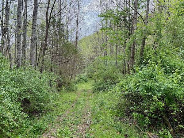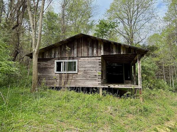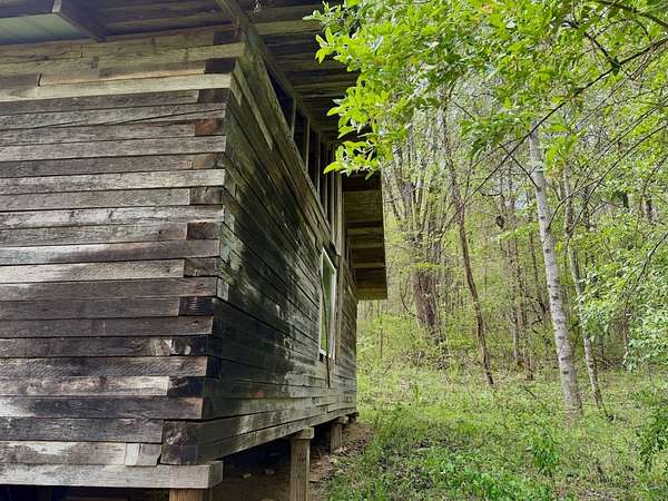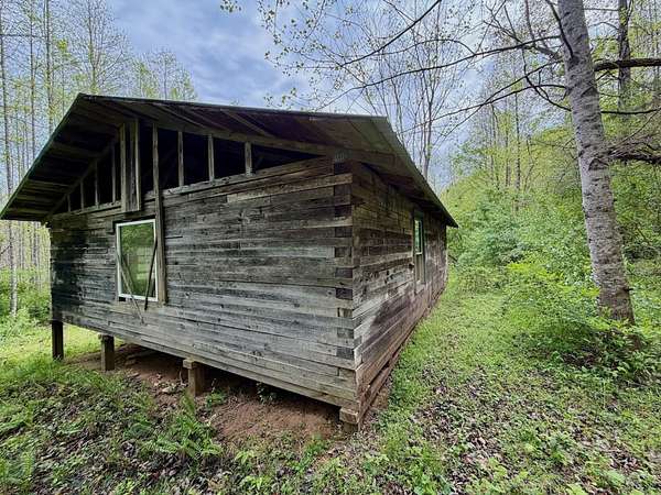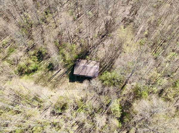 A well-established trail crosses the creek and leads into the mountain portion of the land, opening up a world of opportunity. As you gain elevation, you'll find natural saddles and open areas-ideal locations for food plots, deer stands, or additional cabin sites. About halfway up the mountain, a partially constructed rustic cabin awaits your vision-perfect for those looking to complete a unique project and create something special.