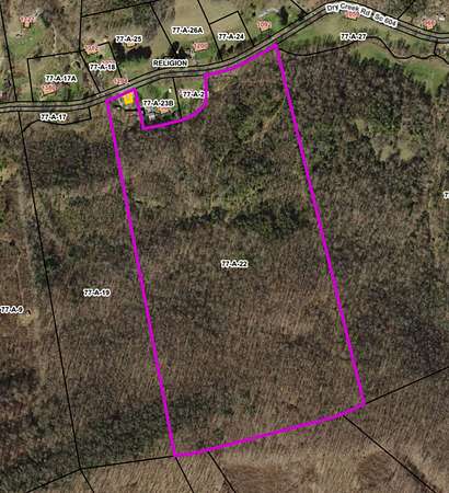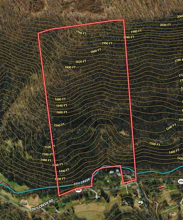 The property is rich with mature hardwoods and abundant wildlife, including deer, turkey, and bear, making it a true haven for hunters and outdoor enthusiasts. Elevations range from approximately 1,360 feet along the creek to over 2,000 feet at the top, offering scenic views and diverse terrain throughout.