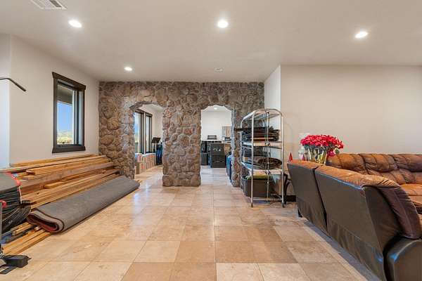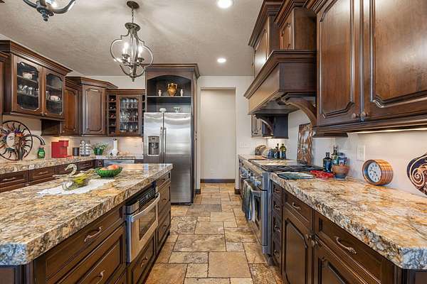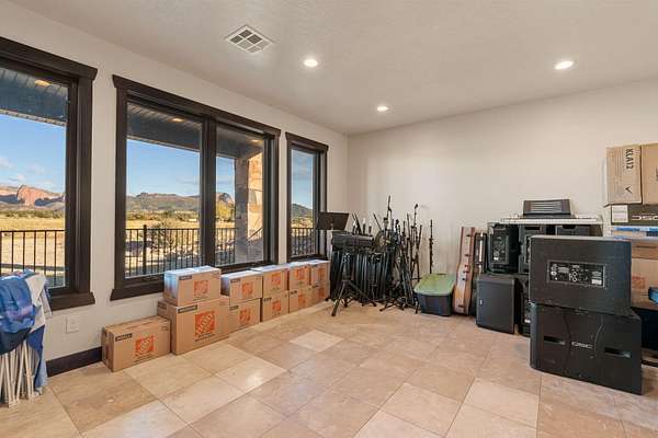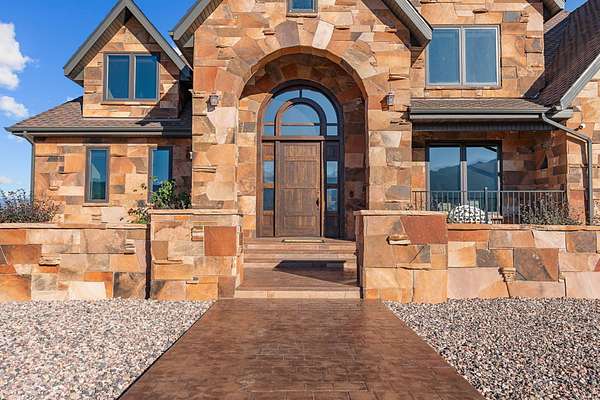 Custom Built Stone House with Spectacular Views Only 20 minutes away from Zions National Park and features breathtaking unobstructed views of the Kolob Fingers to the East. Welcome to your dream retreat-nestled on a sprawling 20 acres of pristine landscape, this custom-built stone house offers an idyllic blend of luxury and nature. With 5 spacious bedrooms plus a versatile bonus room upstairs, this home is perfect for families or those seeking ample space for guests. Experience stunning views of the majestic Kolob Fingers to the East as well as the majestic Pine Valley Mountains to the North and the Black Ridge to the South, providing a picturesque backdrop for any occasion. Enter through a grand foyer featuring elegant travertine tile flooring and an inviting atmosphere. The open layout seamlessly connects each area, creating a harmonious flow from room to room. Enjoy the warmth of two wood-burning fireplaces and one gas fireplace located in the master bedroom, perfect for cozy evenings spent relaxing at home. The kitchen the heart of the home boasts granite countertops and rich cherry wood cabinetry. The spacious island provides ample room for meal preparation or casual dining, while high-end appliances make cooking a pleasure. Retire to your Luxurious Master Suite bedroom that features a private gas fireplace and a sumptuous soaking tub in the ensuite bath, perfect for unwinding after a long day. The upstairs bonus room offers endless possibilities use it as a playroom, office, or personal retreat, catering to your unique lifestyle. Expand your living space with a fully finished basement, ideal for entertaining, storage, or transformation into a home gym or theater. Enjoy enhanced energy efficiency and comfort year-round. Equipped with triple-pane windows, 2x6 walls with blown-in insulation and 4 separate zones for heating and cooling. Revel in the tranquility of nature from your expansive outdoor space, perfect for starry nights, family gatherings, or simply soaking in the serene surroundings. This one-of-a-kind home isn't just a house; it's a lifestyle. Located near the renowned Zions National Park, adventure awaits just outside your front door. Embrace the opportunity to hike, explore, and create unforgettable memories in a landscape that feels like a painting. Don't Miss Out! Seize this rare opportunity to own a piece of paradise. This custom-built stone house is not just a property; it's a canvas for your dreams. Contact us today to schedule a private showing and begin your journey to owning this exceptional home! NOTE: Desk in kitchen/dining area, and shelving in office and garage are not included in the sale.
