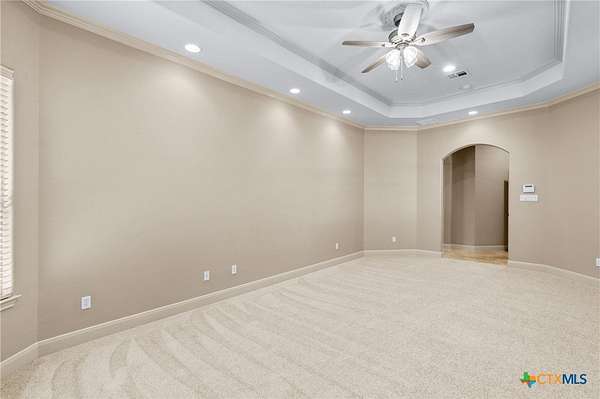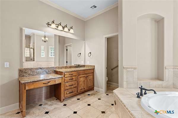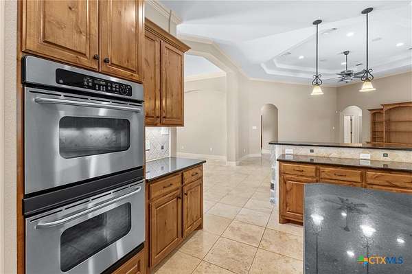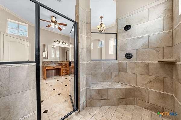 - Bookcases, Built In Features, Ceiling Fans, Custom Cabinets, Double Vanity, Eat In Kitchen, Garden Tub Roman Tub, High Ceilings, Home Office, Kitchen Island, Pantry, Pull Down Attic Stairs