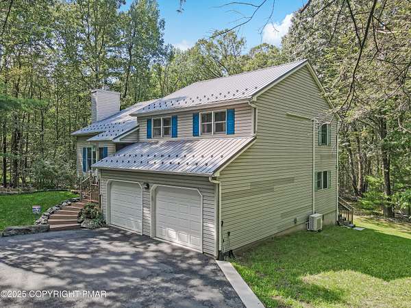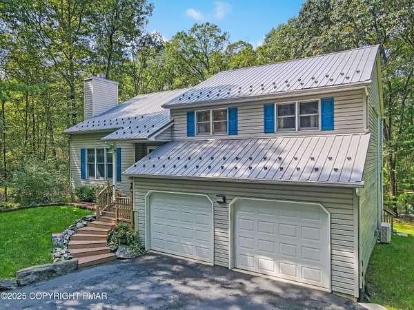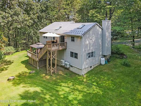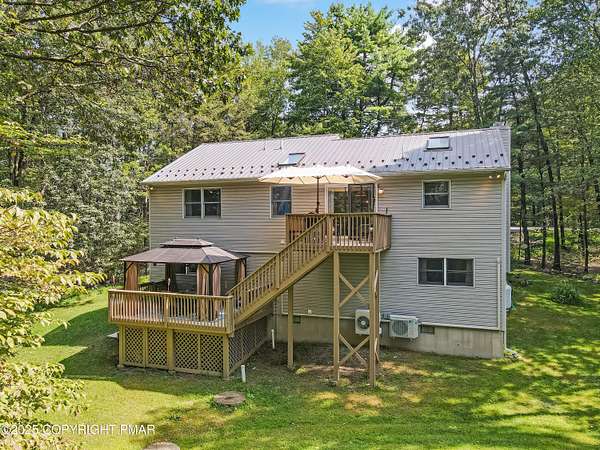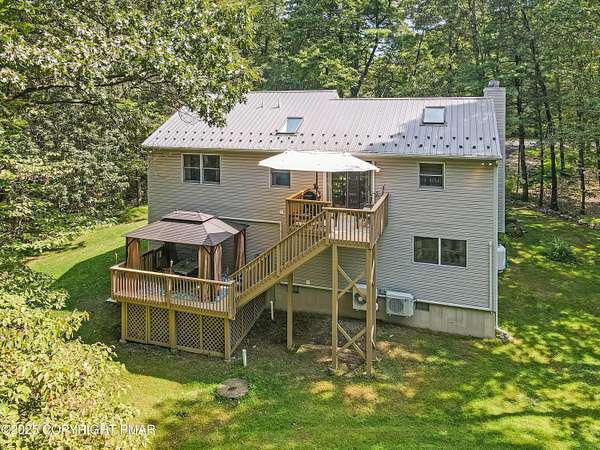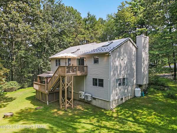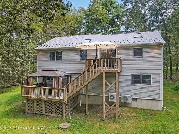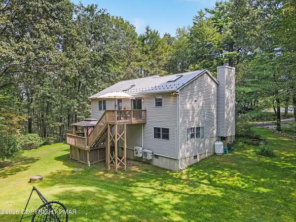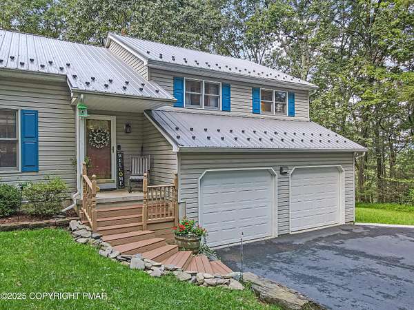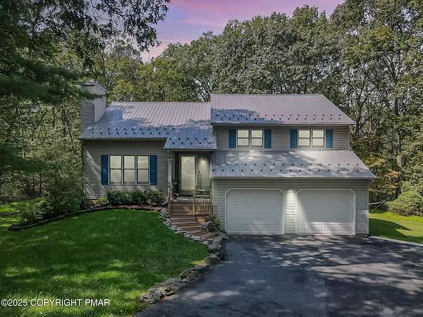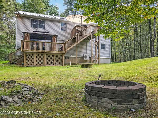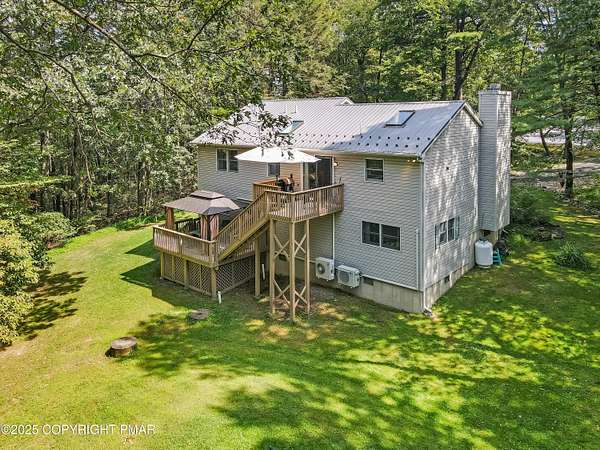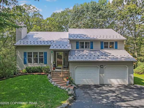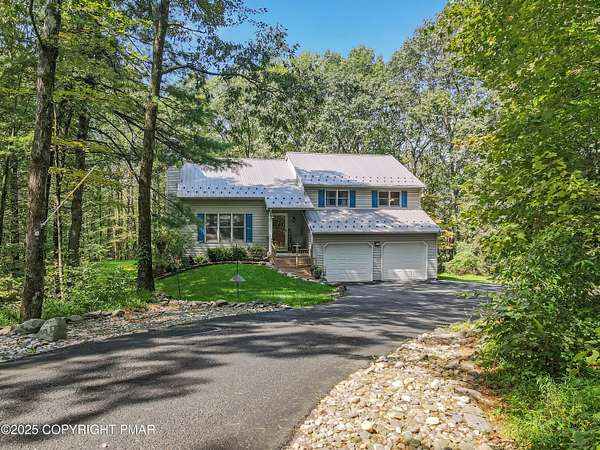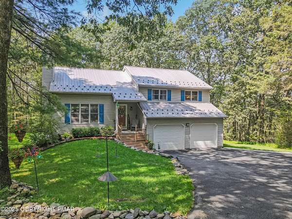 Step inside this inviting home featuring a vaulted living room with a stunning brick propane fireplace, seamlessly open to the spacious kitchen and dining area. The kitchen is highlighted by granite countertops and a tile backsplash, perfect for both everyday meals and entertaining. Enjoy peace of mind with a maintenance-free exterior including a durable metal roof, vinyl siding, and composite decking. Outdoor living shines here with a two-tier deck, cozy fire pit, and a handy storage shed-all set on a private 3+ acre lot. The lower-level rec room offers the ideal space for entertaining or relaxing. Comfort is ensured year-round with updated mini-split heating and cooling systems throughout the home. Conveniently located just off Route 115, this property provides an easy 30-minute commute to the Lehigh Valley with quick access to Routes 33 and 80. Don't miss the opportunity to enjoy both privacy and convenience in this move-in ready home! Showings begin with Open House, September 20th from 12-3PM