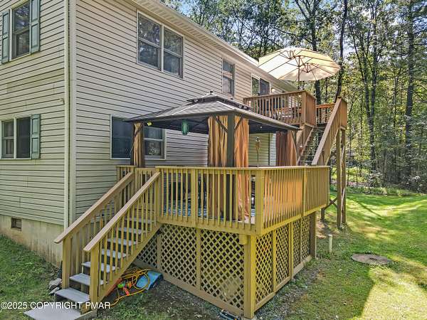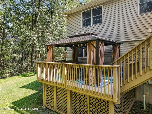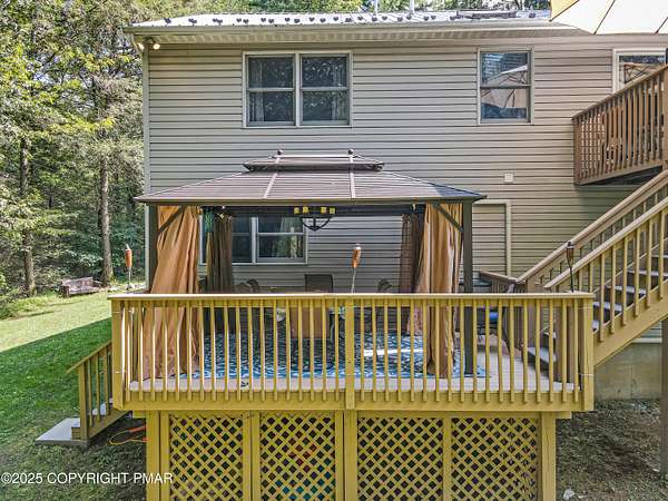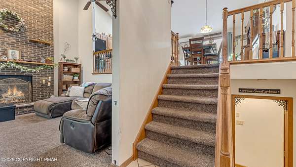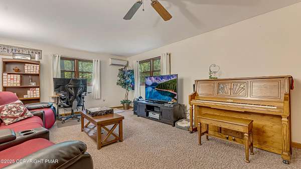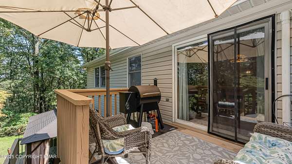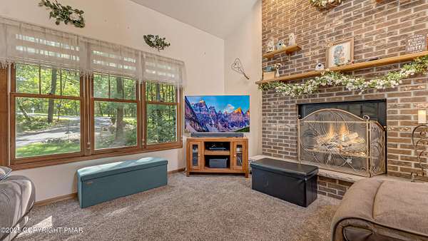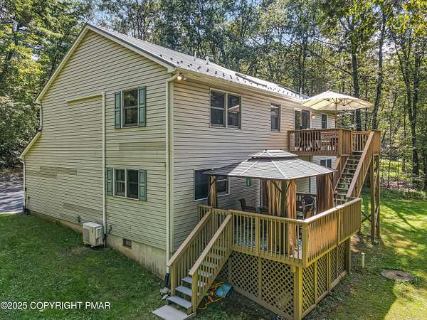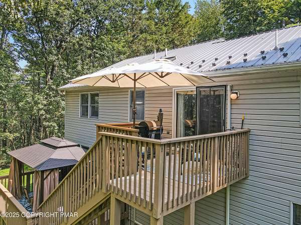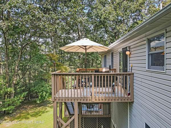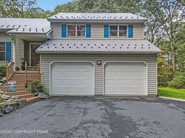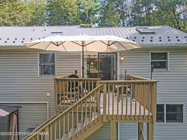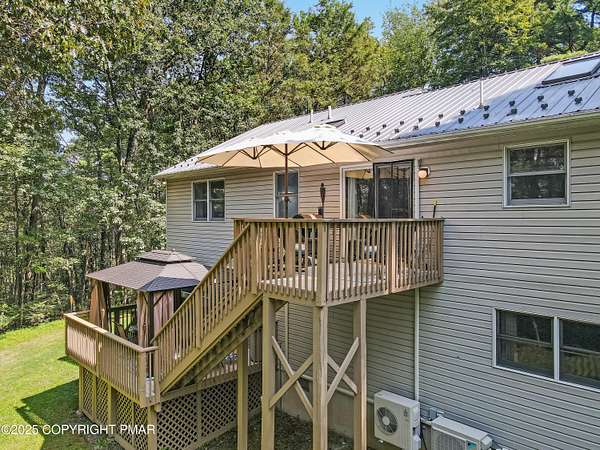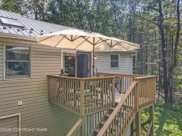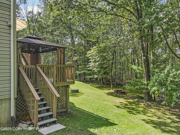 Step inside this inviting home featuring a vaulted living room with a stunning brick propane fireplace, seamlessly open to the spacious kitchen and dining area. The kitchen is highlighted by granite countertops and a tile backsplash, perfect for both everyday meals and entertaining. Enjoy peace of mind with a maintenance-free exterior including a durable metal roof, vinyl siding, and composite decking. Outdoor living shines here with a two-tier deck, cozy fire pit, and a handy storage shed-all set on a private 3+ acre lot. The lower-level rec room offers the ideal space for entertaining or relaxing. Comfort is ensured year-round with updated mini-split heating and cooling systems throughout the home. Conveniently located just off Route 115, this property provides an easy 30-minute commute to the Lehigh Valley with quick access to Routes 33 and 80. Don't miss the opportunity to enjoy both privacy and convenience in this move-in ready home! Showings begin with Open House, September 20th from 12-3PM