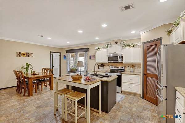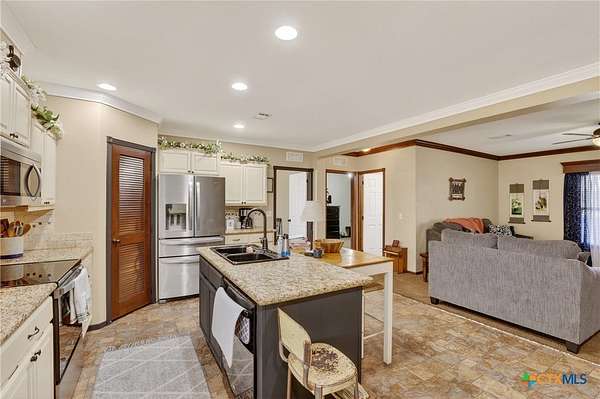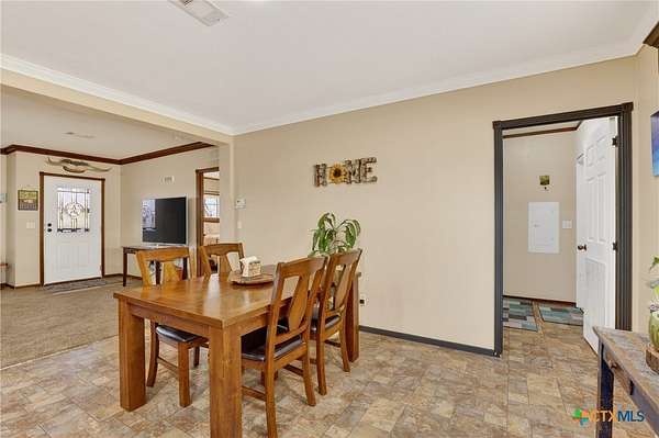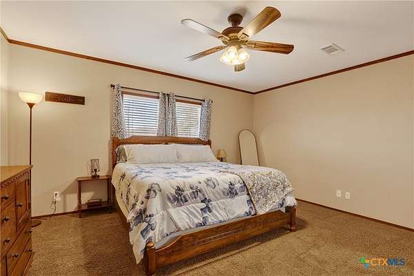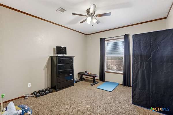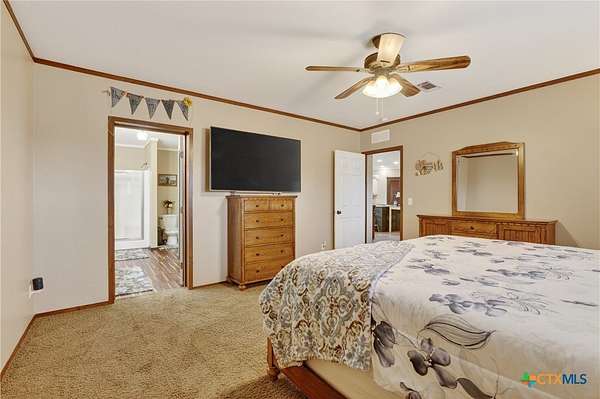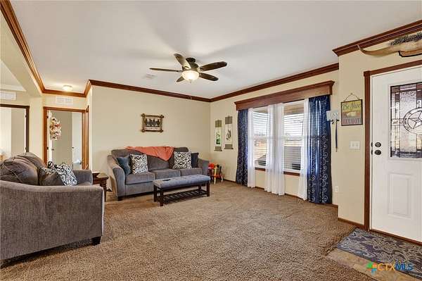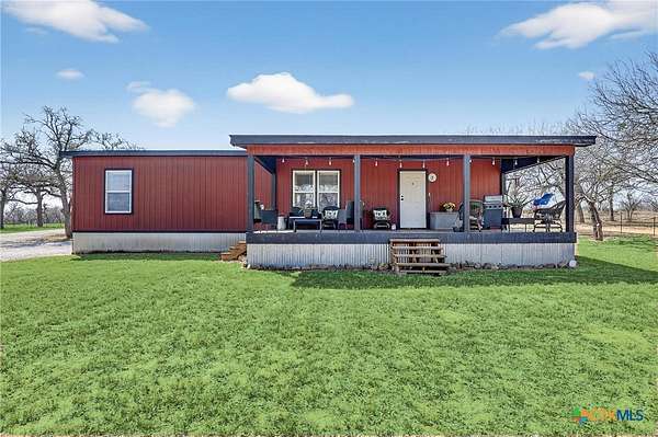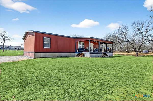 Charming 3 bedroom, 2 bath manufactured home situated on 3.75 beautiful acres dotted with Oak trees. This property offers an electric entrance gate, full perimeter fencing, with cross fencing - perfect for livestock or added privacy. A storage shed with electricity is in place, along with exterior water access for convenience.There is a seasonal creek that runs through the back of the property, but no flood plain. Inside you will find an inviting open-concept layout featuring granite countertops, custom cabinetry, and durable vinyl and carpet flooring. The spacious primary suite includes double vanities and a walk-in closet. An interior utility room adds everyday practicaitlity. Located on a paved county road, this property combines peaceful country living with easy access and modern comforts. Plenty of space to spread out and make it your own.