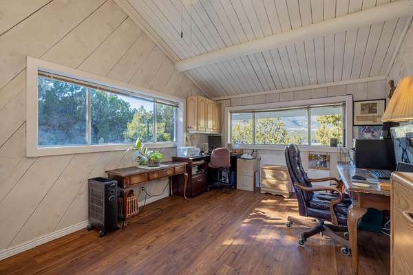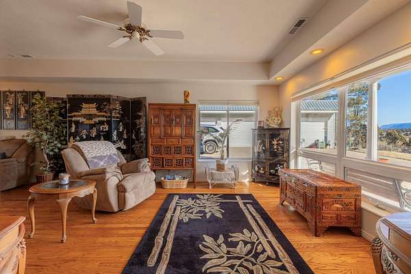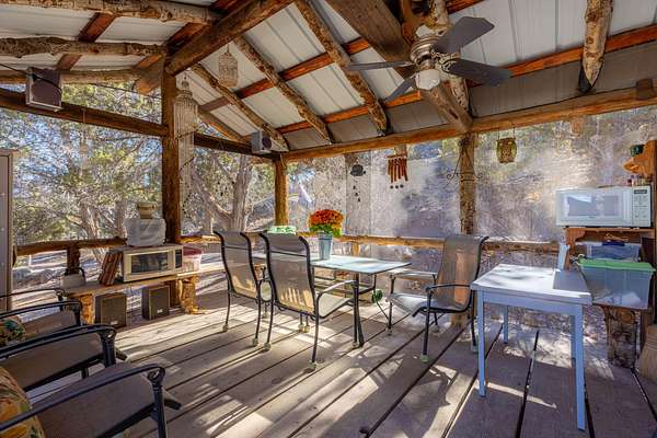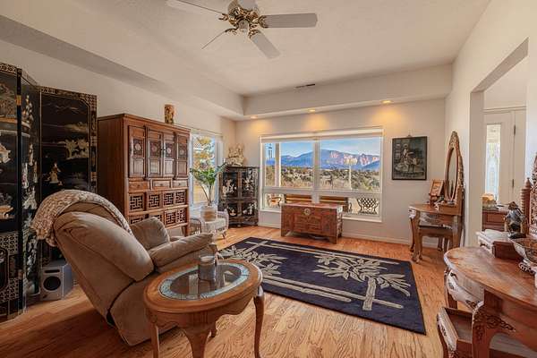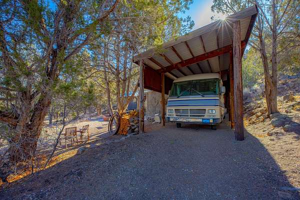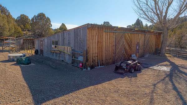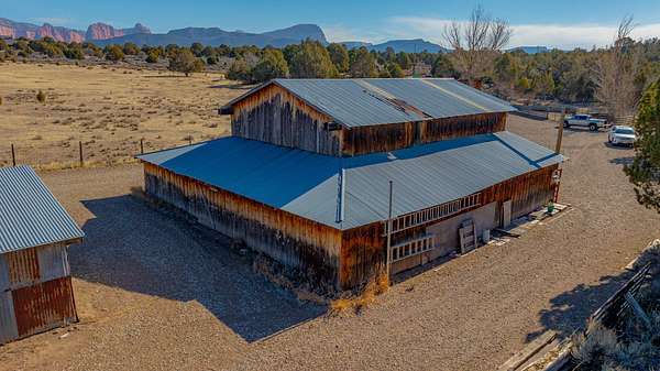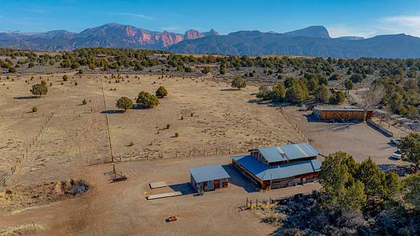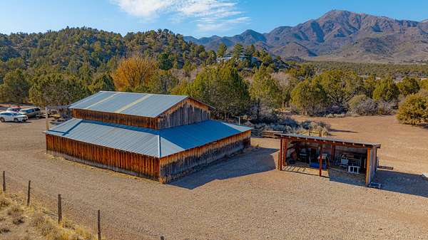 Located in the serene community of New Harmony Utah, Happy Trails 2 U Ranch is an easy drive to both St George and Cedar City Utah; two popular destinations in southern Utah with ample amenities, shopping and medical facilities. The home, barn and outbuildings are conveniently arranged around a camp-like setting in the middle of the 50 acres, providing an incredible spot for family reunions or visiting guests. The home is comfortable and inviting. Significant improvements having been made to the home and property over the years. A large second floor space serves as a mother-in-law suite, work-from-home office, or even an art studio. Views abound from the home with the front deck offering an incredible unobstructed line of sight to the Kolob Canyons "5 Fingers" rock formation. The home and property sit at approximately 5,000 feet in elevation and are bordered by Ash Creek to the west - this part of southern Utah offers warmer summer days, cooler evenings and milder winter weather. Happy Trails 2 U Ranch would serve as an ideal equestrian property. With access to the Pine Valley Mountain Wilderness in your backyard, skiing at Brian Head resort and proximity to Zion National Park, there are no shortage of places to go and things to do. Mountain biking, horseback riding, hiking, skiing, and ATV riding are all popular activities in this part of southern Utah. For access to world class shopping, dining and entertainment, Las Vegas is approximately 2 hours and 15 minutes down Interstate-15. In addition to fenced pasture, the ranch includes a hay barn, a workshop and smaller barn set up with a chicken coop and walk-in cooler for meat processing and storage. There is plenty of storage for equipment and vehicles on the ranch. Six RV pads each have clean-outs, plus power and water supply. The outdoor kitchen is a perfect amenity for entertaining friends and family, spring through fall. Three water rights on the ranch provide 5-acre feet of water for irrigation and livestock. Water to the ranch is sourced from a well and pumped to a large holding tank.