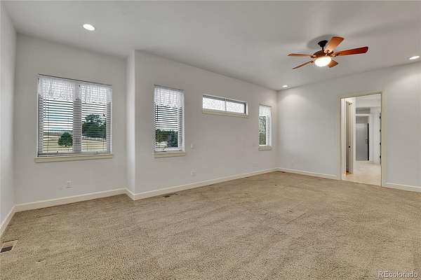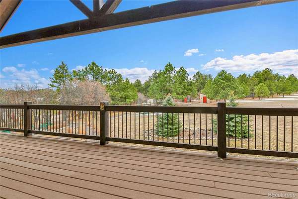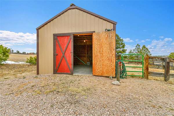 Fantastic custom walkout ranch style home with Pikes Peak views! The original owners had this home crafted to their exacting standards, and now you can enjoy this spacious upgraded home on 42 horse friendly acres. Designed with style, luxury and practicality in mind, this home greets you with soaring ceilings, Colorado views and a cozy fireplace in the sprawling great room. There’s a large Trex deck off the great room with the same impressive views. The gourmet kitchen is perfect for entertaining and even features a custom split door for the pantry. A home office for two and large primary bedroom make this an easy living home. And don’t miss the jetted tub! The walkout basement has a 40’ X 20’ entertainment room along with four more bedrooms, two baths and amazing storage space. Outside, stucco and rock walls with a Class 4 hail resistant roof provide low maintenance, which goes well with your fully owned solar panels. There’s a two stall barn with tack room, a greenhouse and fenced garden for year round gardening. Another large storage shed keeps your tools handy. Crowfoot Springs is a small community of friendly neighbors, one that you’ll be proud to call Home. There’s truly too much to list here, but this is your new address for custom Colorado living.