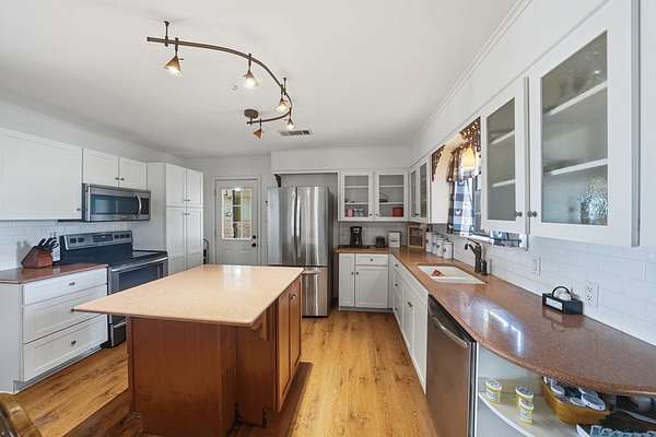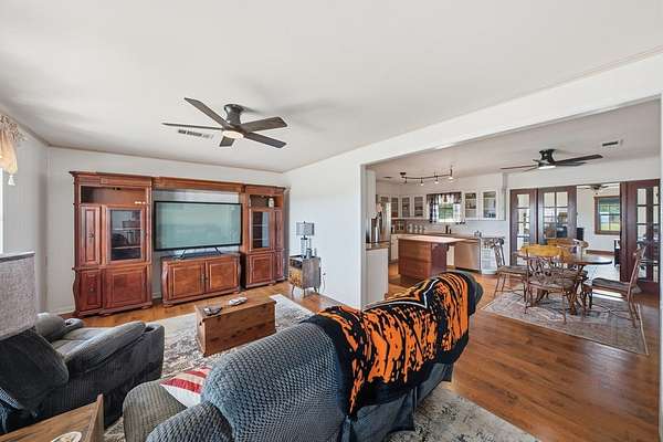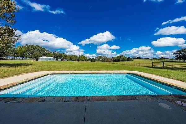 Est $3,936/moBeautiful countryside setting surrounded by large acreage tracts and impressive ranches. This updated home sits on 12 acres and offers two inviting living areas, one featuring a charming stone fireplace. The large country kitchen opens seamlessly to both living spaces, creating the perfect flow for family and friends to gather. The spacious primary suite captures peaceful countryside views and includes a luxurious bath with soaking tub, walk in shower, and an expansive closet. A 900 sq. ft. metal shop includes a 500 sq. ft. finished living area with a half bath - ideal as a bunk room, guest quarters, or entertainment space- overlooking a sparkling swimming pool.