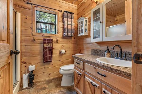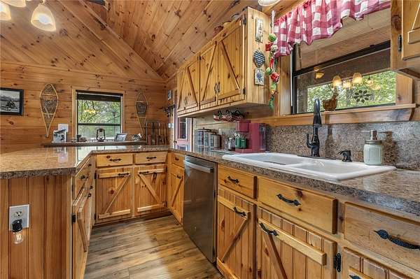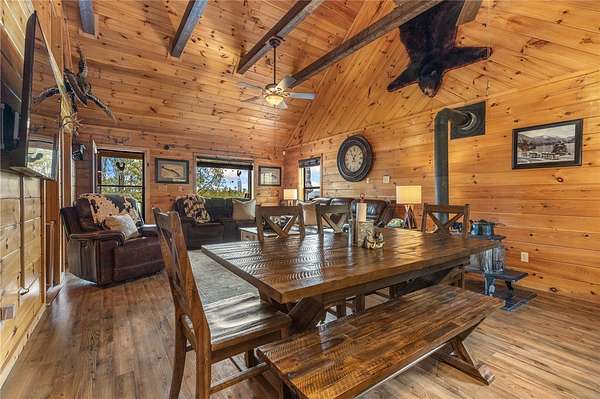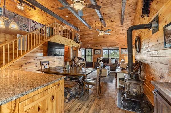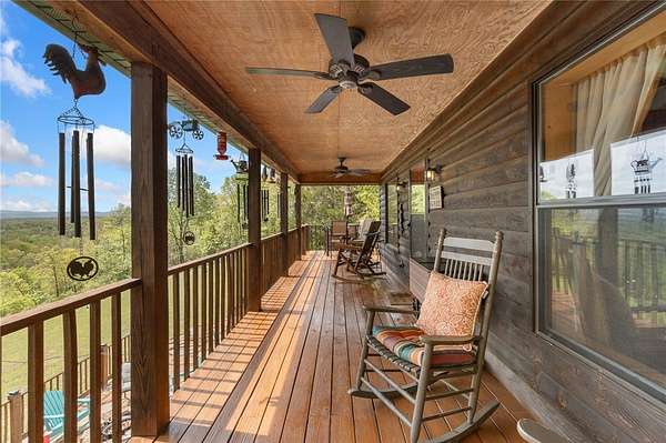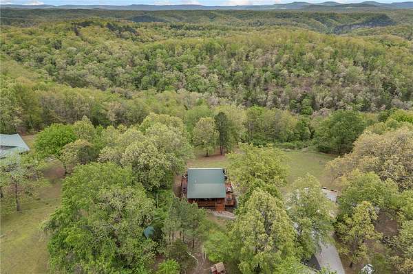 If you've been dreaming of a peaceful retreat with unforgettable views, this 3-bedroom, 2-bath log cabin on over seven park-like acres delivers. A full four-sided wraparound porch offers stunning views of the Tyler Bend area of the Buffalo National River. Located just five minutes from Gilbert and Grinder's Ferry access and moments from Tyler Bend, you'll enjoy easy access to some of the river's most loved destinations. You're also just minutes from local favorites-Ferguson's Country Store and Coursey's Smoked Meats. An additional homesite at the front of the property already has utilities in place-perfect for a guest house or income-producing rental. The lower level features a bedroom/family room combo with its own kitchen and private outdoor access, ideal for guests or multi-generational living. Extras include an RV hookup, two-car carport, outbuilding, and shed. Whether you're looking for a full-time home, weekend getaway, or investment, this one checks all the boxes.
