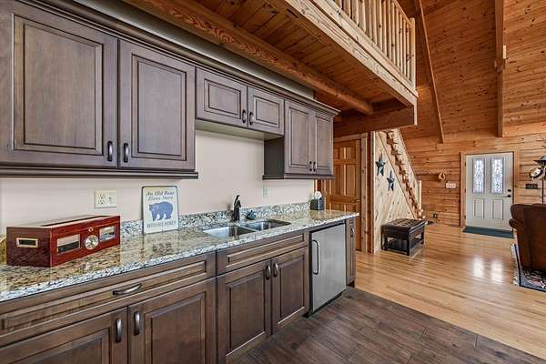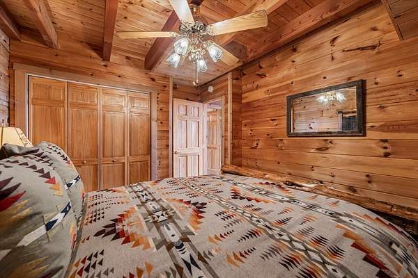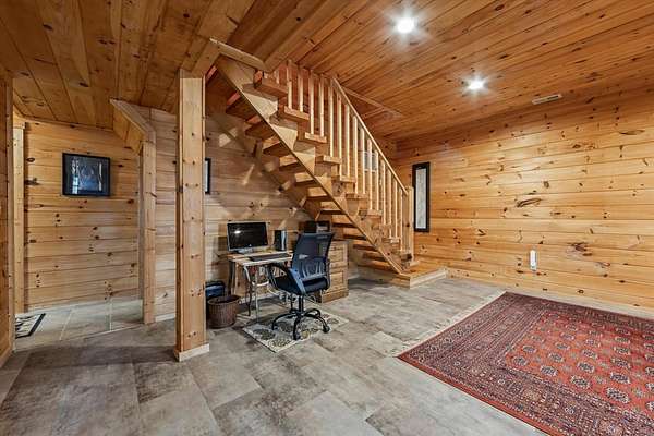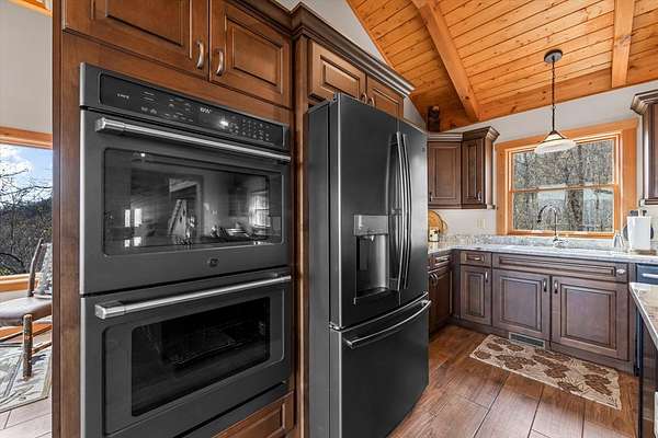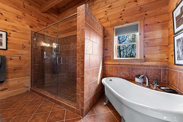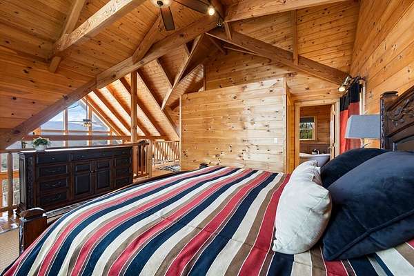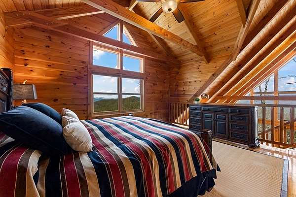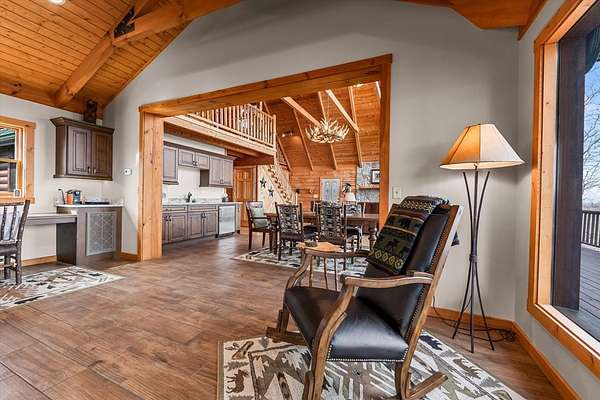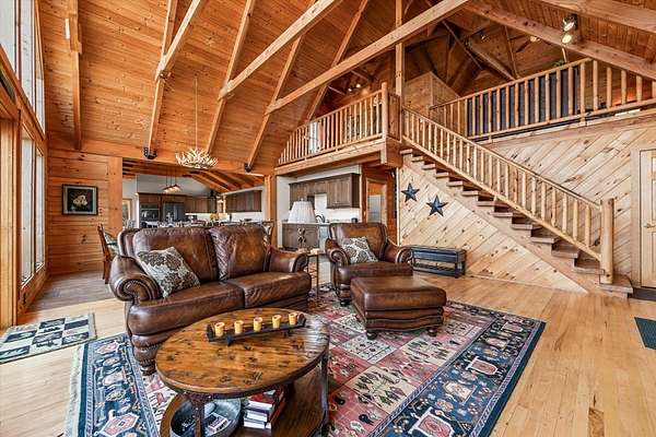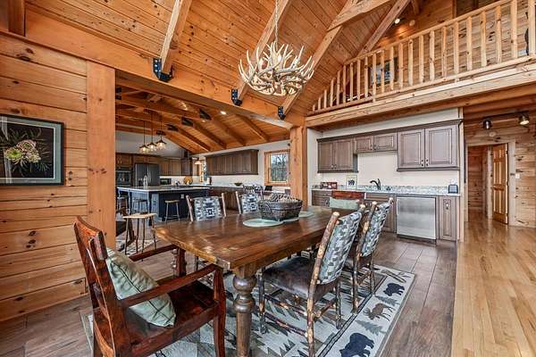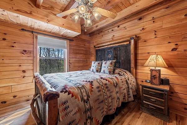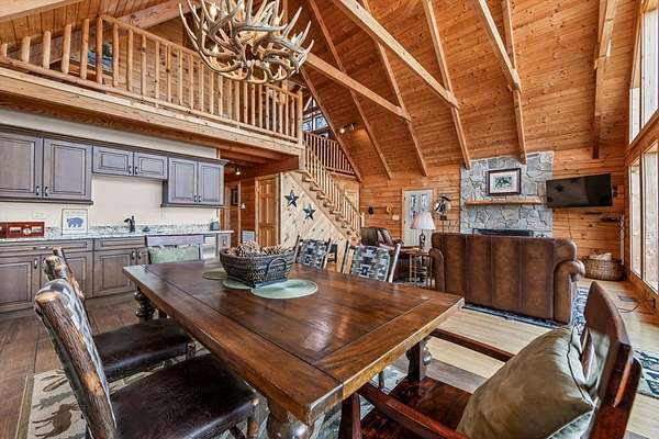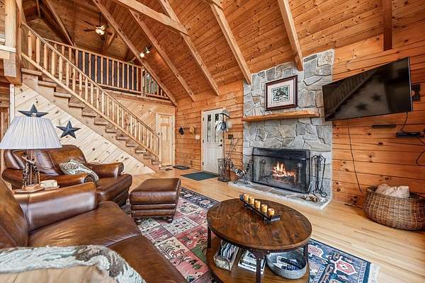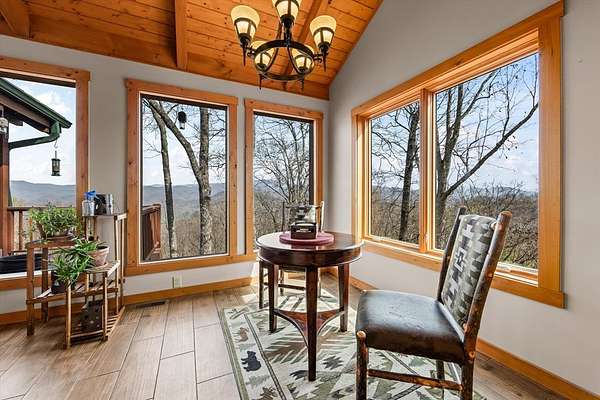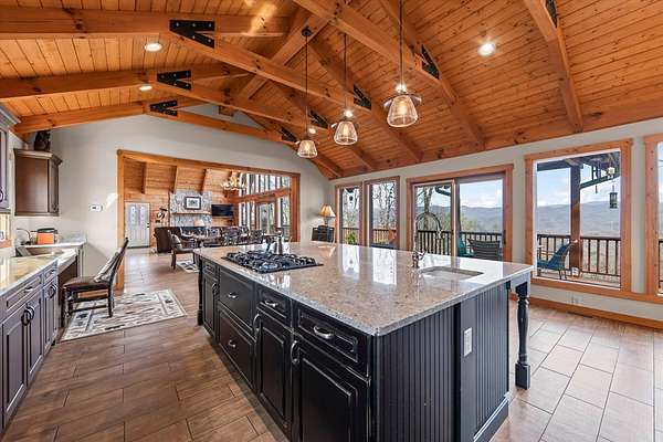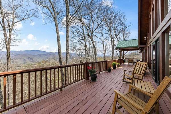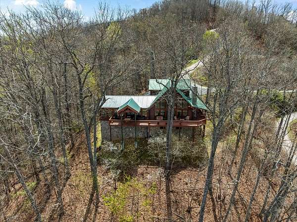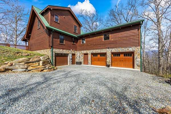 On 10 acres in the heart of the Great Smoky Mountains, this exceptional 3-bedroom, 3 full-bath fully updated log cabin blends refined mountain living with rustic charm. The layout features a warm, inviting living space that flows from the entrance across the entire 1st floor including a large dining area with bar. The spacious kitchen is a true standout, offering an oversized granite island, a charming breakfast nook, and an oversized walk-in pantry. A dramatic wall of floor-to-ceiling windows fills the home with natural light while perfectly framing breathtaking mountain views. The upper loft is exclusively the primary bedroom with a small office area, a large, updated bathroom, and spectacular views of the mountains. The lower level is large, fully finished for an in-law suite, game room depending if this home is a family getaway or rental. Step onto the expansive deck; enjoy the rare opportunity to take in both sunrise and sunset from the same place. Additional features include a metal roof, 3 garages (one used as a workshop),10 acres of mountain property, including an additional lot for a potential homesite, ideal for a guest home or future build. Truly a special opportunity.