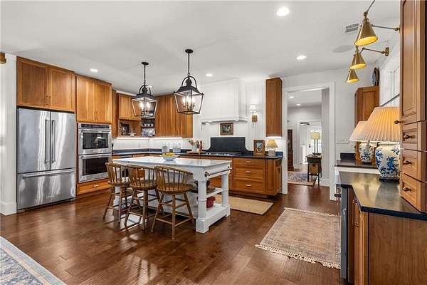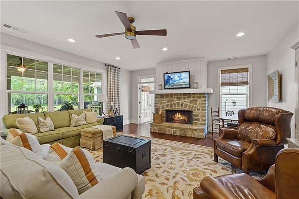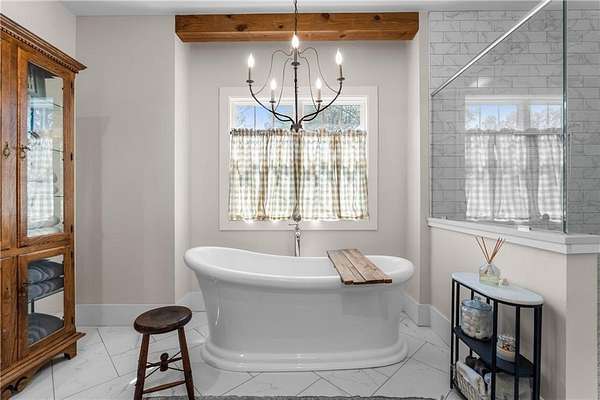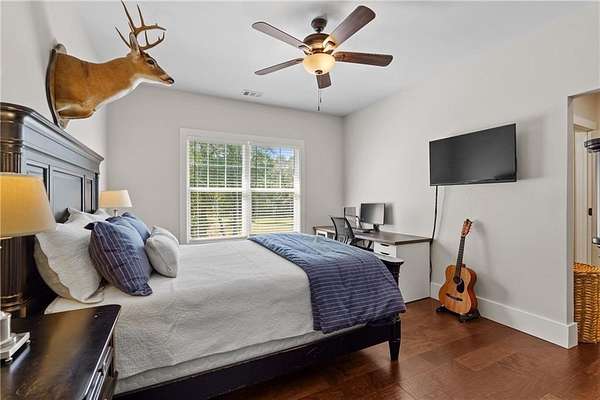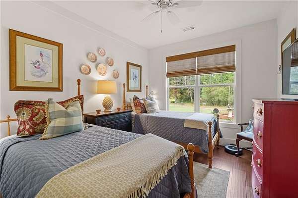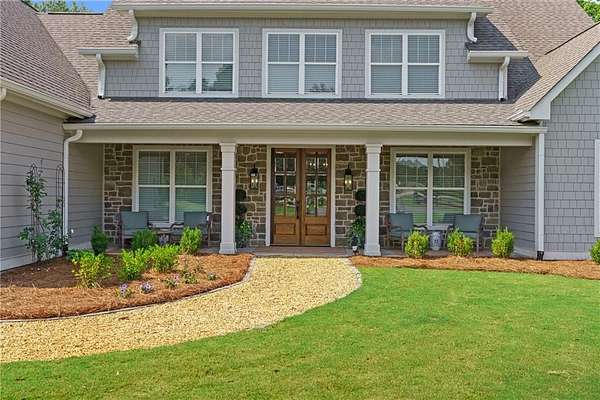 Experience refined southern living at this custom farmhouse, located on over 6 beautiful acres. Built in 2023, the home has a functional layout that is perfect for today's lifestyle, and is complete with a separate cottage, perfect for in-laws or guests! From the moment you arrive, you'll quickly notice a seamless blend of timeless craftsmanship and modern sophistication, beginning with the rocking chair front porch and solid wood french doors. The main home has 5 bedrooms, with the primary and a second bedroom on the main level. A few details that are immediate upon arrival are designer lighting, tongue-in-groove walls, exposed beams and beautiful hardwood floors. The kitchen is the heart of the home and is just as functional as it is beautiful! Solid wood cabinets surround the large center island, appliances include double ovens, a gas cooktop, farmsink, TWO dishwashers and a walk-in pantry that makes for a small scullery. Whether you love to cook every day or just on occasion, you'll enjoy spending a lot of time in this kitchen! The main level also includes a sizeable laundry room with mud room, home office, three car garage that is extra deep to fit larger vehicles and storage shelves. The primary bedroom has vaulted ceilings, two walk-in closets and a stunning bathroom with natural light, free standing tub, oversized shower and water closet. Upstairs, there are 3 bedrooms, one en-suite and 2 share a jack-n-jill bathroom. The loft and oversized bonus room provide a lot of flex space! The cottage will give you cozy vibes that make you feel like you're in Highlands! Its finishes are the same level as the main home, and includes a primary bedroom, guest bedroom, 2 bathrooms, full kitchen, garage, laundry and flex room. Relax on the screened porch or the open air porch, both overlooking tranquil setting. If you like to garden, you are set! The property has a private well, 15 zone irrigation and completing the grounds is a red barn. Retreat from the world, yet only 15 minutes to Athens and 1 hour to Atlanta.