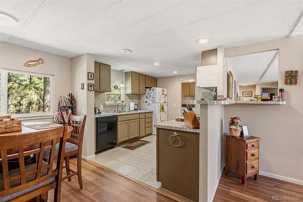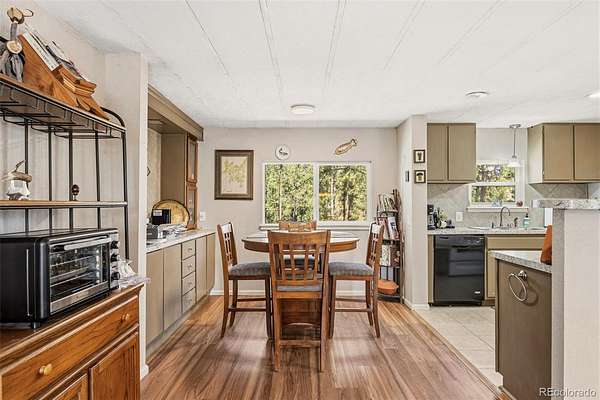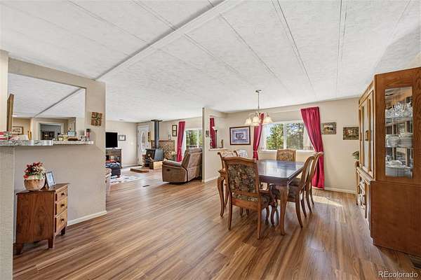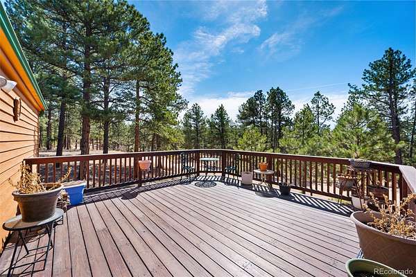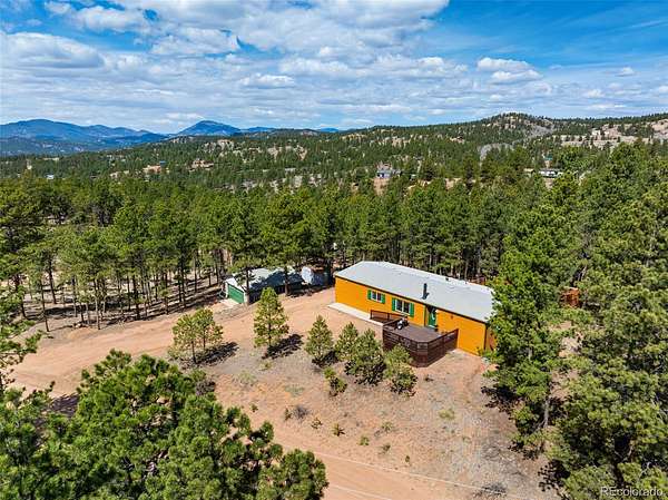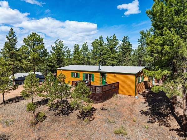 Set among the pines in Florissant, this inviting home offers a comfortable balance of privacy and accessibility, with the option to be purchased fully furnished for a seamless move-in experience. Tucked within a quiet mountain community, it remains just a short drive to Woodland Park, Divide, and Cripple Creek for dining, shopping, and everyday conveniences. Located within Florissant Heights with a voluntary HOA and served by a household well, the property offers flexibility while still being part of an established area. Recent updates include new insulated steel siding, along with a roof certification, septic inspection with certification, and a foundation certification completed by an engineer, offering added confidence in the care and upkeep of the home. A spacious front deck extends the living space outdoors, providing a natural place to enjoy the fresh air and surrounding setting. Inside, the home opens to a bright and comfortable living area where large windows bring in natural light and views of the outdoors. Warm wood style flooring and a wood burning stove with a brick hearth create a space that feels both functional and inviting, well suited for everyday living or relaxed evenings. The layout flows easily into the dining area, offering room to gather or entertain. The kitchen is well positioned with generous cabinet space, ample countertops, and convenient access to the main living areas. Down the hall, the bedrooms are comfortably sized, including a primary suite with its own ensuite bath and good closet space. Outside, the detached cinder block garage adds flexibility for storage, vehicles, or workshop use. With a practical layout and a location that keeps you connected while still offering a peaceful setting, this property is well suited for full time living, a second home, or investment.