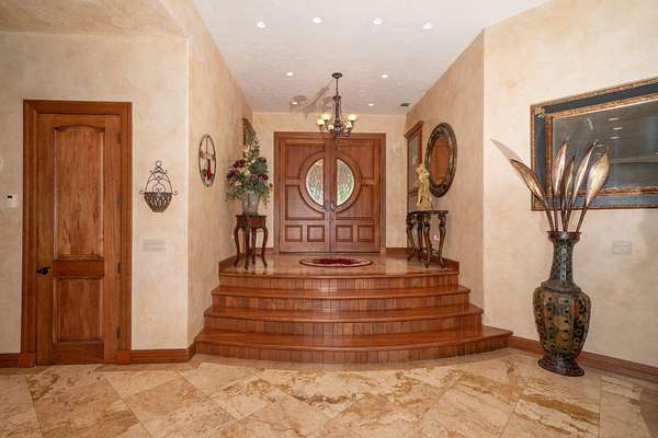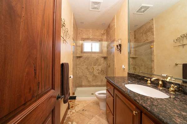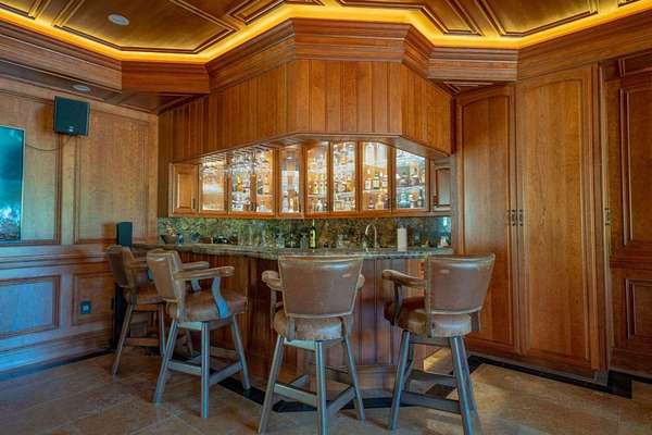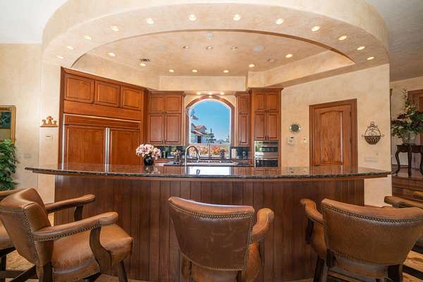 - Breakfast Bar, Built-In Features, Ceiling Fan(s), Central Vacuum, Double Vanity, Enclosed Toilet(s), Granite Counters, Kitchen Island, Linen Closet, Open Floorplan, Pantry, Primary Downstairs, Stone Counters, Tile Shower, Vaulted Ceiling(s), Walk-In Closet(s), Wet Bar, Wired For Data, Wired For Sound
