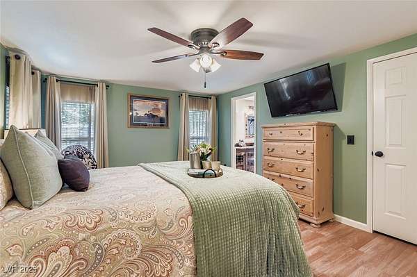 - Bedroom On Main Level, Ceiling Fans, Primary Downstairs, Window Treatments