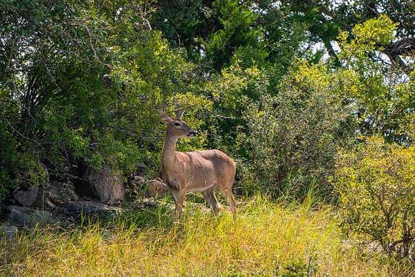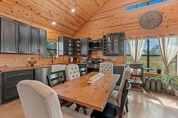 Hackberry Road Ranch offers a turnkey opportunity for hunting, recreation, and relaxation--all within a well-managed game ranch. This stunning property combines dramatic topography, Hill Country hardwoods, and prime wildlife habitat with modern comforts. The property is enhanced by a fully appointed, furnished 1,392 sf cabin built in 2021, constructed from pine and cedar. The cabin features two bedrooms, two bathrooms, an upstairs loft, a spacious den, and a fully equipped kitchen, making it ideal for hosting family and friends. With approximately 100' of elevation change, the land delivers sweeping views and a diverse landscape, highlighted by the dry East Prong of the Nueces River running through the property. The ranch features a balanced mix of live oak, shin oak, and cedar, with the added character of pinyon pine--rare for this part of the Hill Country. The dry East Prong of the Nueces River bisects the property, creating an appealing mix of ridges, draws, and rolling terrain. Excellent tree cover provides ideal habitat for wildlife, and the elevation changes deliver long-range views from multiple vantage points.Hackberry Road Ranch supports a well-managed population of whitetail, elk, axis, fallow, sika, aoudad, and blackbuck. A professional game management program helps maintain healthy herds and enhance the hunting experience, making this a top-tier property for sportsmen. The ranch features the dry East Prong of the Nueces River and a surface tank. One water well services the cabin and a nearby water trough.