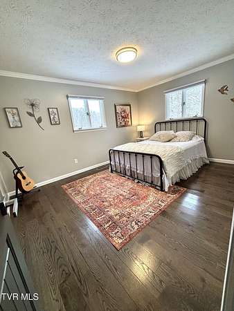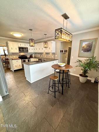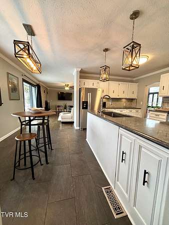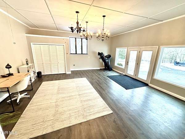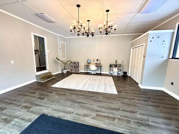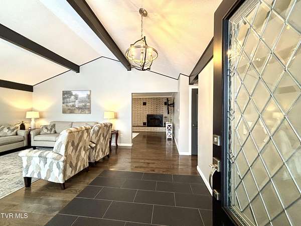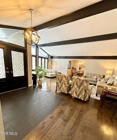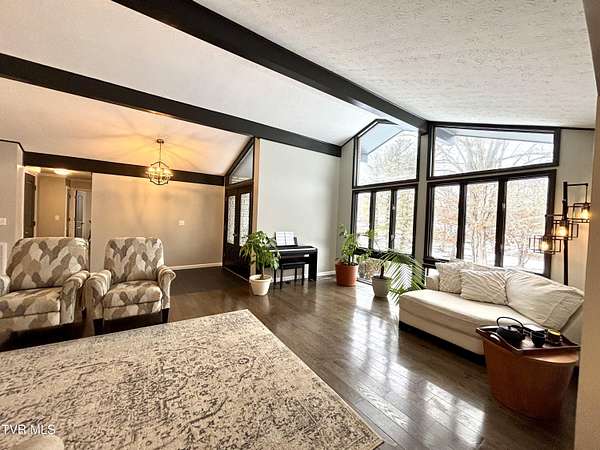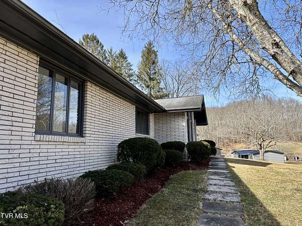 Beautifully updated 2,670 sq ft mid-century modern ranch featuring 3 bedrooms and 2.5 bathrooms on over 9 acres of amazing property. Interior highlights include hardwood floors, wood beams in the formal living room, expansive windows for abundant natural light and a wood-burning fireplace in the den. The kitchen boasts white cabinets, stainless steel appliances including a double oven and quartz counters. The spacious primary suite has his and her closets and an updated bathroom including a walk-in shower with glass doors. The main bathroom features a Jacuzzi tub and 2 sinks with ample storage. There is an office as well as a bonus space in the converted garage. Outdoor amenities include a spacious barn/workshop with storage/bonus space above, large metal outbuilding, garden area, small pond, a creek, camping area with fire pit, waterfalls and a trail leading to the Guest River Gorge Trail. This home has mature landscaping complete with new blueberry and blackberry bushes as well as fruit trees (peach, pear, cherry and apple). This is a rare opportunity offering acreage, character, updates and direct access to outdoor recreation. Located 2 miles from the four lane, schedule your private showing today! Buyers and buyers agents to verify information contained in this listing. Subject to errors and omissions..
