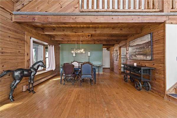 Inside, the custom log home blends warmth and character with open, light-filled living spaces. Expansive windows frame beautiful views of the acreage, while the open upper loft serves as a luxurious primary suite retreat overlooking the main living area. Designed to complement the home’s rustic elegance, the suite features a large storage area, walk-in closet, walk-in shower, and soaking tub for a true private getaway. The lower level adds even more versatility with space for fitness, work, or relaxation. Whether you’re hosting, working, or unwinding, this property delivers a lifestyle that is increasingly hard to find, with space, usability, and purpose-built equestrian infrastructure. Conveniently located just minutes from town, you get the best of country living without sacrificing access to everyday amenities.