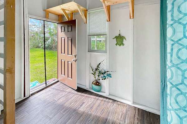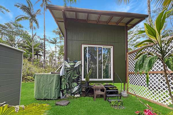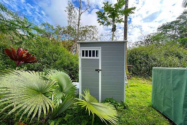 Experience the serenity of nature on this 1-acre lot in Leilani Estates-an ideal canvas for your future home. This ready-to-building property is partially leveled and has a concrete driveway apron, gate and long driveway. The property offers privacy, lush foliage, and a peaceful setting surrounded by mature greenery, palms, and several fruit-bearing trees. The lot includes HOA approved house plans and plot map. Also on the land is a charming county compliant unpermitted agricultural 120 square foot shed, thoughtfully upgraded and well-suited as an artist studio, creative workspace, garden office, or storage building. Enhancements include fresh paint, a storage loft, built-in shelving and cabinets, and a tiled workbench. It comes with a brand-new solar system, a triple filtered UV water filtration system, a new water heater and water pump. There is a backyard privacy screen with steps from the sliding glass door to the forested backyard with beautiful plants and flowers. An additional small outdoor storage shed adds even more functional space for your gardening tools. On site is also a 250-gallon water tank for your water needs. Recent improvements also include the removal of several thousands of dollars' worth of hazardous invasive trees, creating a safer and more open landscape to receive the sun for your solar energy while preserving natural beauty. Located within walking distance of the Leilani Estates community center and park featuring picnic tables, basketball courts, event space, and resident classes. This quiet neighborhood offers paved roads, private mailboxes and great internet services. Just 15 minutes from Pahoa town, where you'll enjoy convenient access to shopping, dining, schools, and essential services. The amazing Hawaiian Pacific Ocean is a mere 10 minute drive away! Owner Financing Available:) This ready-to-build lot is waiting for the right buyer to bring their vision to life and create a personal sanctuary on the Big Island.