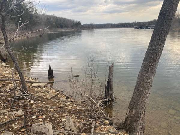 TABLE ROCK LAKE FRONT LOT with 3.16 acres plenty of room to build. Large trees, sloping but not steep featuring Table Rock Lake front access on a beautiful cove. MoArk water and Carroll County Electric access at Alyeska Point Rd. Sellers had a road made to lower part of the lot and some trees cut. This was where they had intended to build, but life plans changed. No subdivision, no HOA, water and electric available. Lake house dreams can be made possible here at Lot 13 Alyeska Point Rd.