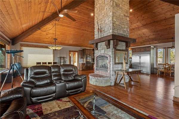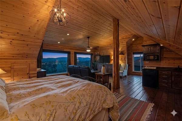 - Attic Storage, Blinds, Built-Ins, Cathedral Ceiling, Ceiling Fans, Drapes, Eat-in-Kitchen, Energy Star Appliances, Granite Counters, Ice Maker Connection, Led Lighting, Pantry, Programmable Thermostat, Smoke Detector, Split Floor Plan, Walk-In Closets, Wet Bar, Wired For Sound, Woodstove