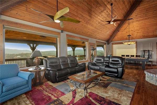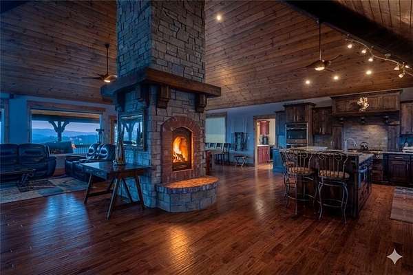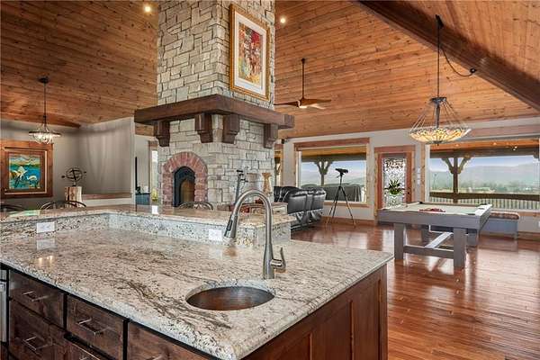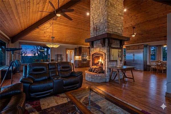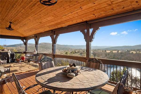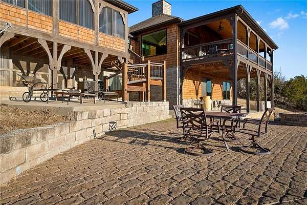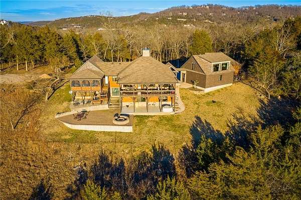 Step into elegance where the tranquil rhythm of the White River meets luxury of Table Rock Lk. Perched on 2.89 acres of stunning bluffs on the Island, this contemporary masterpiece invites you to panoramic views & architectural grace. Cathedral ceilings & magnificent multi-sided gas fireplace set the stage for cozy winter evenings, while the chef’s kitchen, 2 bars & entrtnmnt areas await your next gathering. The homes tells a tale of versatility and comfort; the primary suite- a private sanctuary, while the walk-out basement features full bar & covered deck. The 5-car det. garage isn't just for collectors—it features a charming apartment above, perfect for a creative studio/guest retreat. You aren't just buying a home; but a lifestyle. Mornings on the golf course, afternoons on the pickleball courts or in your garden & sunsets on the bluffs. More than a residence; it is a legacy of Ozark beauty & quiet sophistication, located mins from the vibrant culture of Eureka Springs. Semi-furn, boat/slip lift opt-SEE NOTES