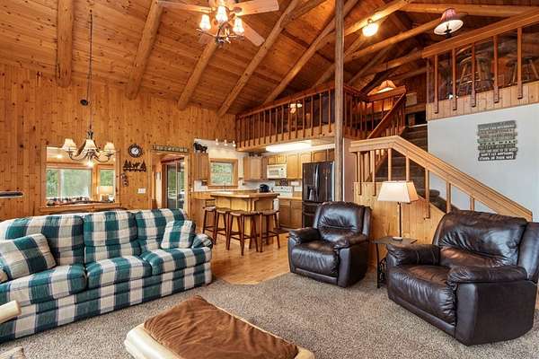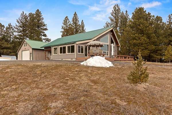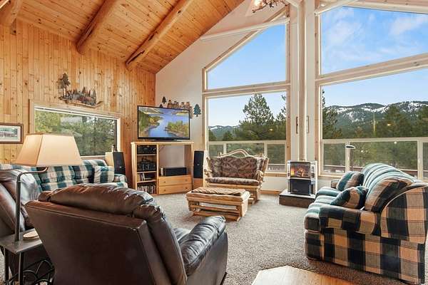 Stunning mountain views set the stage for this beautifully maintained home, cherished by generations of family and ready for its next chapter. Nestled on 2.31 acres, this 2,162 sq ft residence offers comfort, space, and exceptional versatility including a 1,200 sq ft insulated and heated shop/garage perfect for hobbies, storage, or workspace. The main level features two spacious bedrooms, two full bathrooms, a bright living area, kitchen, dining space, laundry room, and a gorgeous sunroom designed to capture the surrounding views. Upstairs, you'll find a large open loft plus a separate bonus room, ideal for guests or an office. Stay comfortable year-round with air conditioning for warm summer days and a cozy propane stove for chilly winter evenings. Additional highlights include most furnishings and a 54" TV, a built-in emergency generator bypass system, paved driveway with RV parking featuring 15-, 30-, and 50-amp service, an outdoor fire pit, automatic exterior lighting, a 150-gallon fuel storage tank, partially sheeted flooring and windows for venting in garage attic and so much more. For expanded possibilities, an additional 2.65-acre lot is available for $175,000.