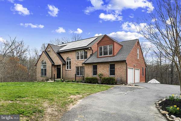 Nestled in the highly desirable Woodleaf subdivision, this custom-built brick estate offers an exceptional blend of privacy, luxury, and modern efficiency. Privately situated on 13+ secluded acres, a breathtaking 150-yard tree-lined driveway creates a grand first impression and a true sense of arrival. With over 4,000 square feet of thoughtfully designed living space, this impressive home features 5 spacious bedrooms and 4.5 baths. The well-appointed floor plan offers comfortable everyday living while seamlessly accommodating gatherings and entertaining. The expansive eat-in kitchen is a chef's delight, complete with cooktop, wall oven, generous counter space, and abundant cabinetry. A cozy wood-burning fireplace warms the main level, creating an inviting atmosphere during cooler months. The lower level boasts a massive workshop-ideal for hobbyists, craftsmen, or creative projects. Recent upgrades provide peace of mind, including a newer HVAC system, dishwasher and brand-new water heater. The roof and gutters are only two years old! This all-electric home is designed for efficiency with leased solar panels and two Tesla backup batteries, helping to significantly reduce utility costs while providing reliable power during outages. Relax year-round in the four-season room or unwind outdoors on one of two spacious decks overlooking the serene, protected watershed acreage. The property invites outdoor adventure with room to explore, hike, and garden. A greenhouse extends your growing season, and the established chicken coop and run add to the homestead charm. Keep the family pets safe too with an invisible fence that's already installed! With county approval, there is even potential to add stables and create a private horse property. Enjoy the tranquility of country living without sacrificing convenience. This extraordinary Woodleaf estate truly offers space, sustainability, and endless possibilities.