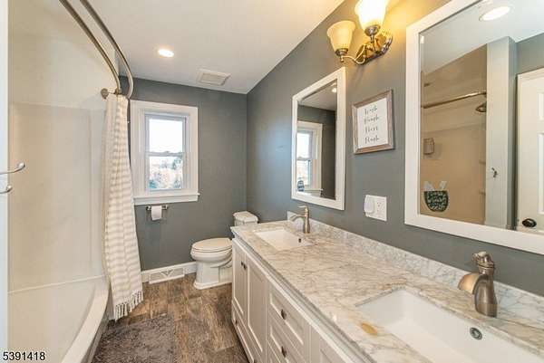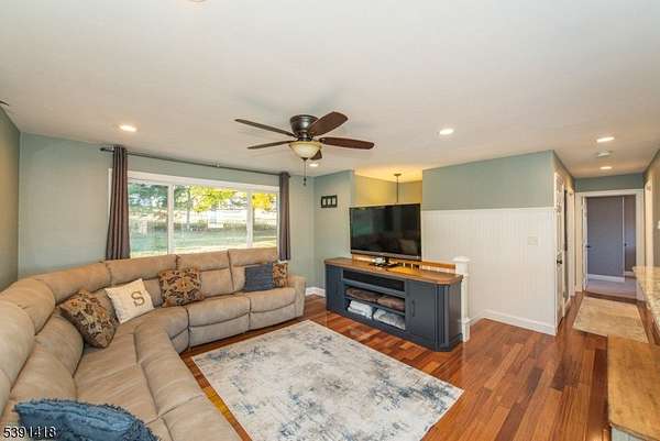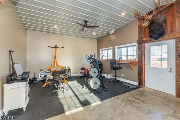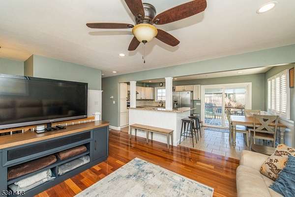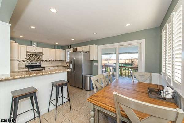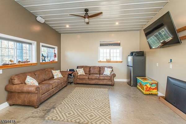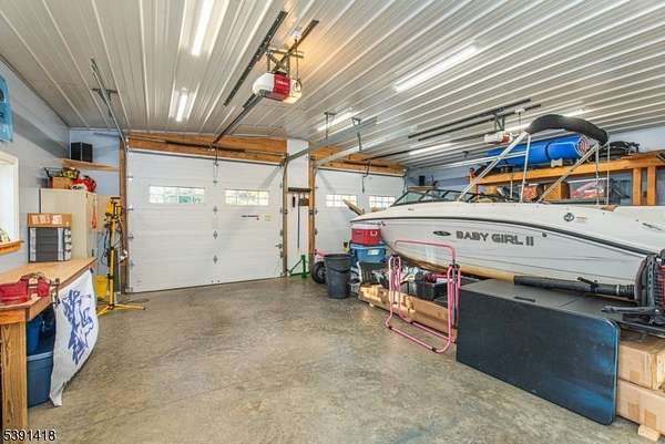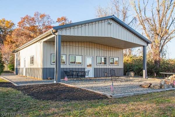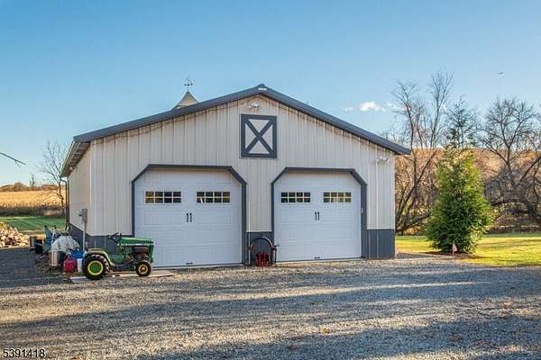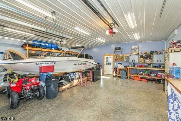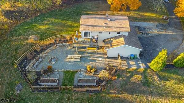 A must see property! This 4-bedroom, 2-bath home featuring 3.79 acres of privacy and 30x55 Pole Barn offers incredible sunrise and sunset views. Inside, you'll find an open-concept layout filled with natural light and updates. The kitchen boasts granite countertops, stainless steel appliances, and a seamless flow into the dining area with sliders leading out to a deck overlooking the scenic property. The lower level includes electric radiant heated porcelain tile floors in den, recessed lighting, sliders to patio, two bedrooms, one full bath, laundry and access to the main garage. Outside, you will find two beautifully fenced-in gardens and two fire pits ideal for gatherings year round. The main garden is surrounded by a 10 foot high fence with two 10 foot access gates. The impressive Morton Pole Barn offers two additional garages and office space and is hooked up to electric and water and is prewired for mini split addition. The barn is constructed with 2x6 wall studs and spray foamed with closed cell foam. Archery and hunting permitted on this property! Located close to Route 46 and within the highly ranked West Morris Central School District, this property combines comfort, functionality, and breathtaking surroundings in one perfect package with several options for hosting gatherings and entertaining guests.