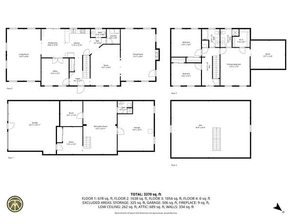 - Basement, Bathroom x 4, Bedroom x 3, Dining Room, Family Room, Kitchen, Living Room, Office