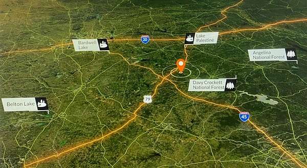 Oakwood NE on Broad St turn Rt on FM 542 GO 5.4 mi turn Rt on CR 242 property on Lft Palestine SW on Ave A turn Lft on Sycamore St turn Rt on FM 322 0.5 mi turn Lft on US 84W turn Lft on W Palestine Ave keep Lft US 79S Buffalo turn Lft on FM 542 4.5 mi turn Rt on CR 242 property on Lft