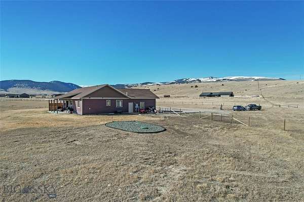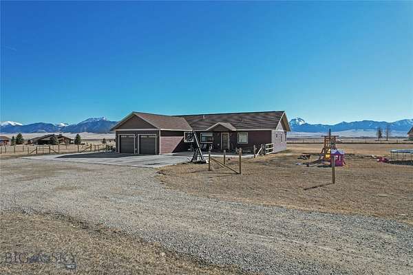 This home is positioned on the bench giving it forever unobstructed views of the Madison Mountains as well as a view of the Madison River! This single level home has large vaulted ceilings with an open floor plan and separate living areas. The master bedroom is on one end of the house and the guest bedrooms and bath are on the other side of the home. The master bedroom is a nice size, has his and hers walk in closets, tiled master bathroom with double vanity, tiled walk in shower and nice sized soaker tub. The kitchen has a double oven propane range, hidden dishwasher, hidden trash can, soft close cabinets and custom silverware and knife block drawers. There is a covered concrete stamped patio out the double french doors, stamped concrete patio out the front with an additional large concrete pad extending across to the double car attached garage. Most of the property is fenced with woven wire to help contain your four legged critters or kids. This home is located in the heart of recreational paradise with the Madison River being less than 2 miles away, quick drive to the Call Road to access the Gravelly Mountains and easy access across the Cutoff Road to get on the Madison Mountains trail systems! In Montana you don't just buy a property you purchase a lifestyle!
