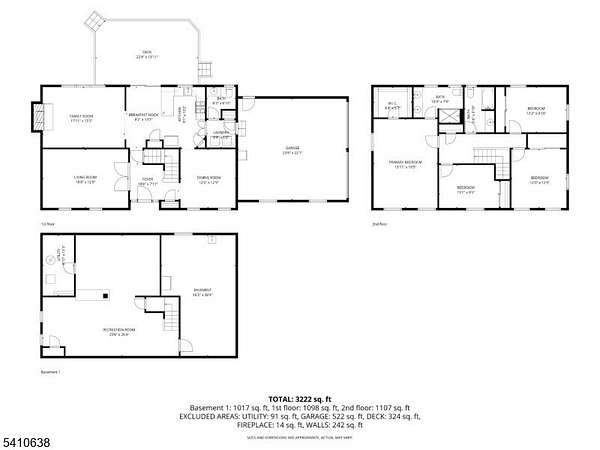 - Basement, Bathroom x 3, Bedroom x 4, Dining Room, Family Room, Kitchen, Living Room