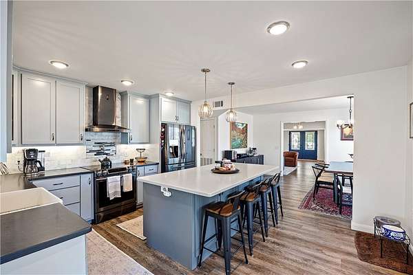 A 3,200+ sq. ft. executive residence blends refined comfort with quiet luxury, designed for both relaxation and entertaining. PHENOMENAL and welcoming-accented with large windows that flood the interior with natural light. 2 wide, paved driveways lead to spacious four-car garages, ideal for multiple vehicles, storage, or even a workshop area. Formal living area leads to an elegant dining room, gourmet kitchen w/ premium appliances, spacious island. Sunroom/den is almost window to window and exudes a warmth that is undeniable. Massive bedrooms, spa-like bathrooms. Salt water pool plus pool house, 2 covered patios. Outdoor entertainment at its best. Separate bonus room with half bath is above the extra 2 car garage/shop.