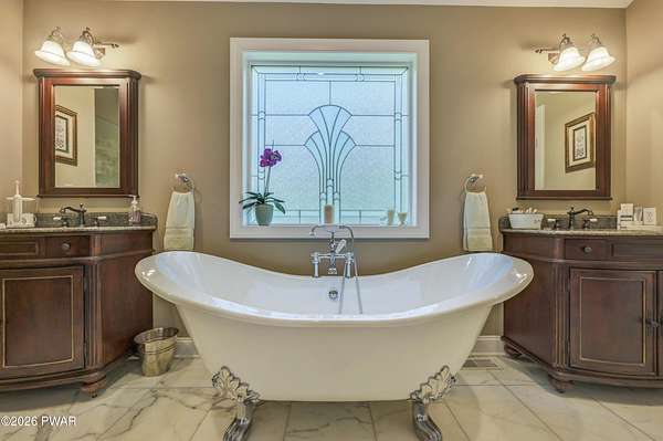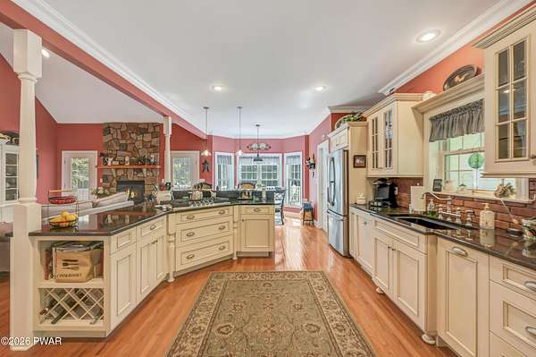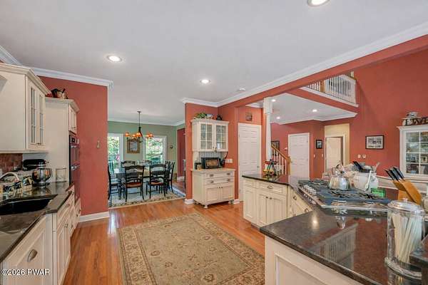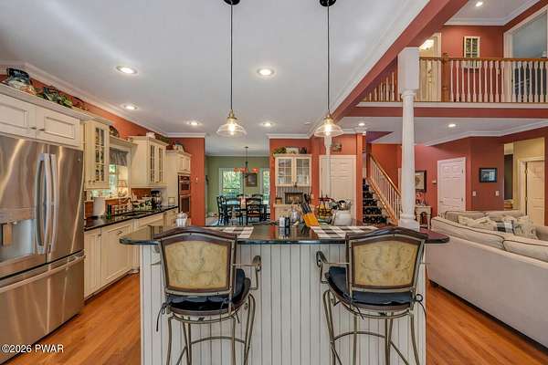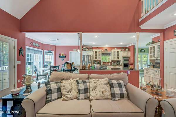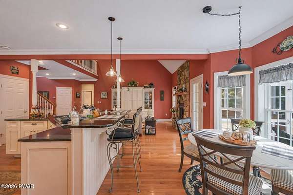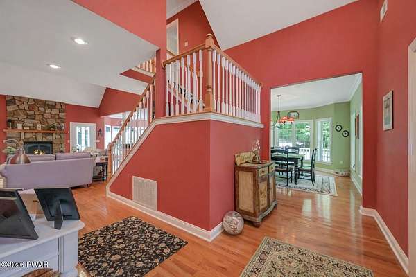 Set behind the privacy of a gated community called The Woods at Duck Harbor, and set on 5.37 wooded acres, this stately 4-bedroom, 2.5 bath colonial commands attention from the moment you turn onto the paved drive. A natural stream traces the edge of the property, a living boundary that marks this land as something genuinely apart.Inside, the main level opens with a well-considered floor plan anchored by a high-end kitchen with breakfast nook, a large living room with floor-to-ceiling stone faced fireplace and vaulted ceilings, a formal dining room, and a primary suite offering a clawfoot tub, walk-in shower, and true sanctuary. A whole-house generator ensures the comforts of home are never interrupted, and a 2-car attached garage keeps your vehicles protected from elements and warm in the winter. The lower level delivers an expansive family room, space for a home gym, generous entertaining storage, and a large unfinished space for future expansion or plenty of storage. Two guest bedrooms and a full bath occupy the upper level.Outside, a screened-in porch, fire pit patio, and front and rear decks extend the living space into the landscape. And beyond the tree line: a private boat slip on Duck Harbor Pond, a motorboat-friendly lake where this kind of access is rare and genuinely irreplaceable.Gated seclusion. Five private acres. A stream-bordered setting. An included boat slip that is entirely your own.Some properties offer a place to live. This one offers a way of living!