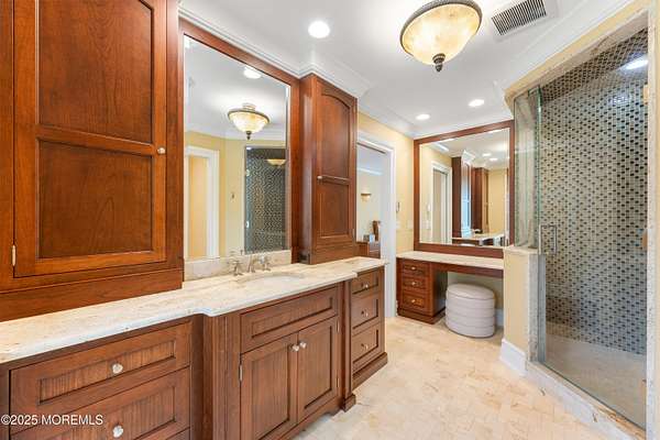 North Facing! Welcome to your private paradise in the heart of Millstone Township! This custom-built, fully renovated estate offers over 6 acres of fenced and gated luxury living, combining sophistication, comfort, and functionality in one extraordinary package. Boasting 4,200 sq ft of beautifully appointed living space plus an additional 2,000 sq ft fully finished basement, this home was masterfully crafted by one of New Jersey's most sought-after builders with exceptional attention to detail throughout. The interior showcases radiant heated floors on the main level, Anderson casement windows, and a brand-new kitchen featuring top-tier appliances, modern cabinetry, and sleek finishes. Every bathroom has been thoughtfully upgraded with designer vanities and custom flooring, seamlessly connecting to spacious, private bedrooms. For added convenience, you'll find laundry rooms on both the first and second floors along with new HVAC systems and baseboard heating for year-round efficiency. Downstairs, the entertainer's dream continues with a custom bar, Sub-Zero wine cooler, and custom built-ins, making the lower level perfect for hosting. Step outside to experience resort-style amenities, including a bluestone fireplace, outdoor bathroom, pool house, and a built-in barbecue area making this an entertainer's dream. For car lovers or hobbyists, the property features an additional detached 2-car garage with plenty of storage, and a barn just in case that is not enough. Perfectly located with easy access to major highways, commuting to the shore, NYC, or nearby attractions is a breeze. Whether you're bringing horses, hosting friends, or growing a family, this one-of-a-kind estate is built for making lifelong memories.